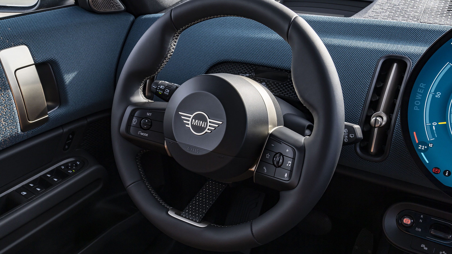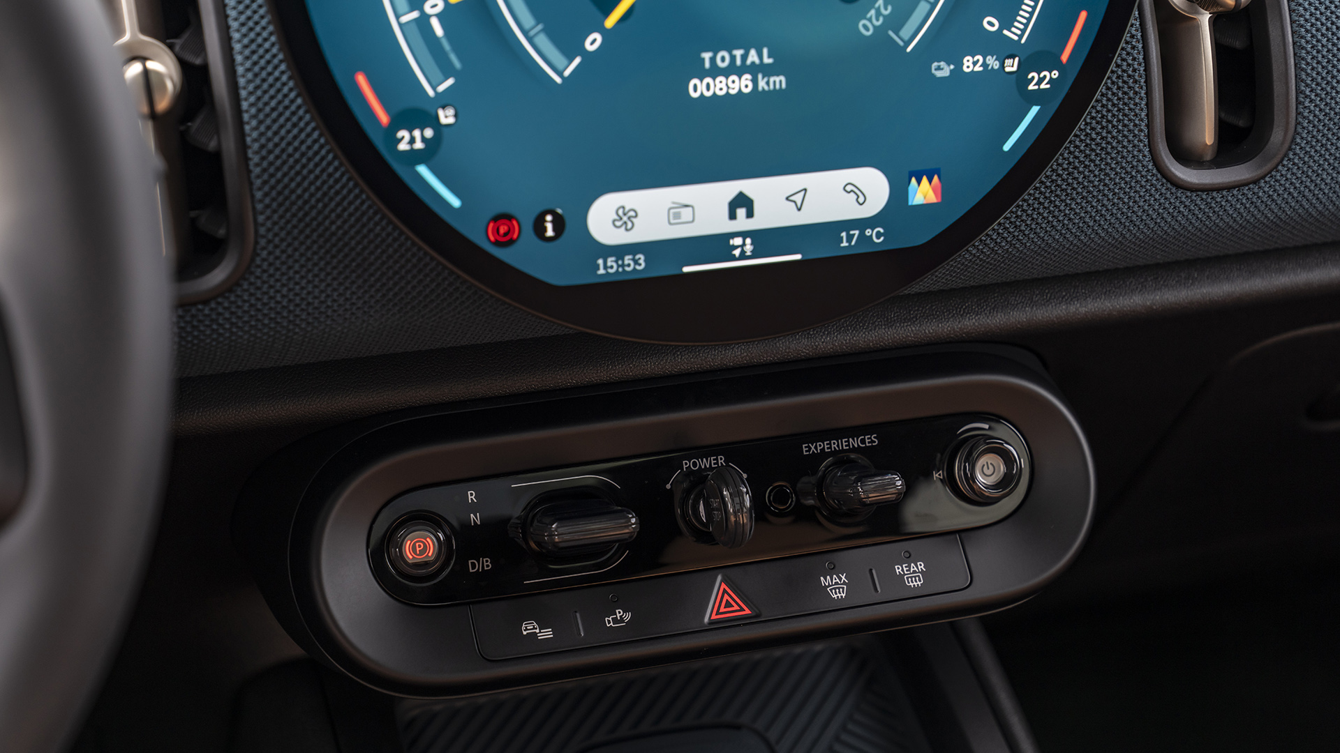 Περνώντας στο εσωτερικό, παρατηρούμε τη στρογγυλή οθόνη OLED στο κέντρο του ταμπλό. Το κεντρικό όργανο με διάμετρο 240 mm και γυάλινη επιφάνεια υψηλής ποιότητας ελέγχει ταυτόχρονα το infotainment και τα συστήματα υποβοήθησης. Με το νέο MINI Operating System 9, η διαχείριση όλων των λειτουργιών του οχήματος μπορεί να γίνεται διαισθητικά μέσω αφής ή φωνητικού βοηθού Spike.
