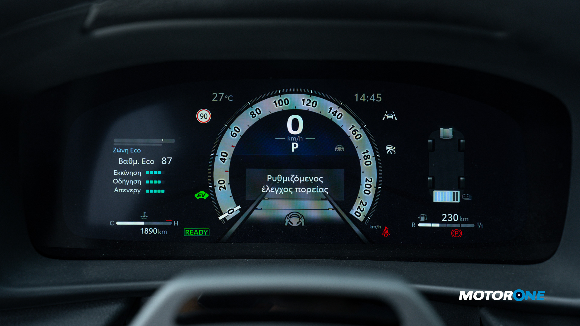 Υπάρχει άλλωστε και η λειτουργία EV με την οποία το σύστημα εστιάζει στην ηλεκτρική κίνηση – αρκεί φυσικά η μπαταρία να έχει αρκετό απόθεμα ενέργειας.