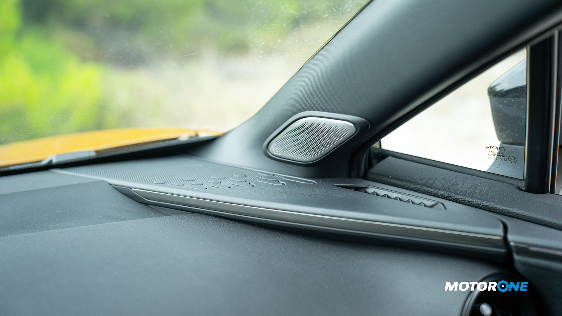 Πίσω από το τιμόνι βρίσκεται ο ψηφιακός πίνακας οργάνων 12,3’’ και στο κέντρο η κεντρική οθόνη αφής 12,3’’ του infotainment, η οποία διαθέτει σύστημα πλοήγησης, ενσωματωμένο φωνητικό βοηθό και υπηρεσίες MyToyota, ασύρματη σύνδεση smartphone μέσω Apple CarPlay ή Android Auto, δυνατότητα over-the-air ενημερώσεων και προβολή της εικόνας από την κάμερα οπισθοπορείας.