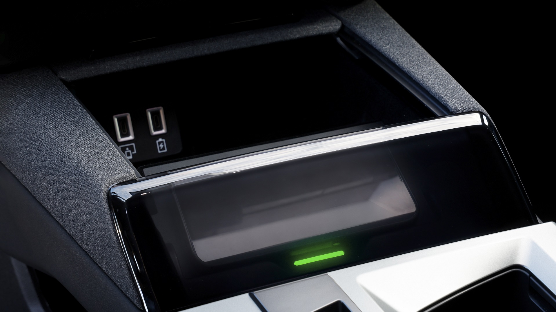 Πιο δεξιά στο ταμπλό δεσπόζει η κεντρική οθόνη αφής 16’’ (10’’ στη βασική έκδοση), που φροντίζει για ασύρματη συνδεσιμότητα smartphone, ενημέρωση, πλοήγηση και ψυχαγωγία. Συνοδεύεται μάλιστα από ευκολίες όπως ο ψηφιακός βοηθός με φωνητική συνομιλία GPT, η απομακρυσμένη ενημέρωση (over-the-air) χαρτών και εφαρμογών και η ασύρματη φόρτιση συμβατών κινητών σε ειδική θήκη χαμηλότερα στην κονσόλα.