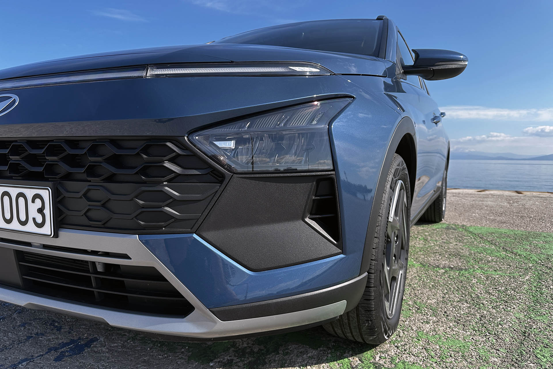 H πιο σημαντική προσθήκη είναι μια μπάρα LED φώτων ημέρας που έχει ενσωματωθεί μπροστά, κάνοντας τη μεγαλύτερη διαφορά. Δημιουργεί μία ενιαία γραμμή με τα φώτα ημέρας, σχηματίζοντας τη φωτεινή υπογραφή Seamless Horizon, όπως την αποκαλεί η Hyundai, η οποία του δίνει μία φουτουριστική εικόνα.