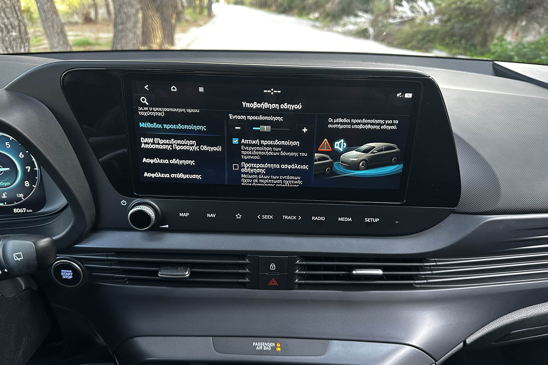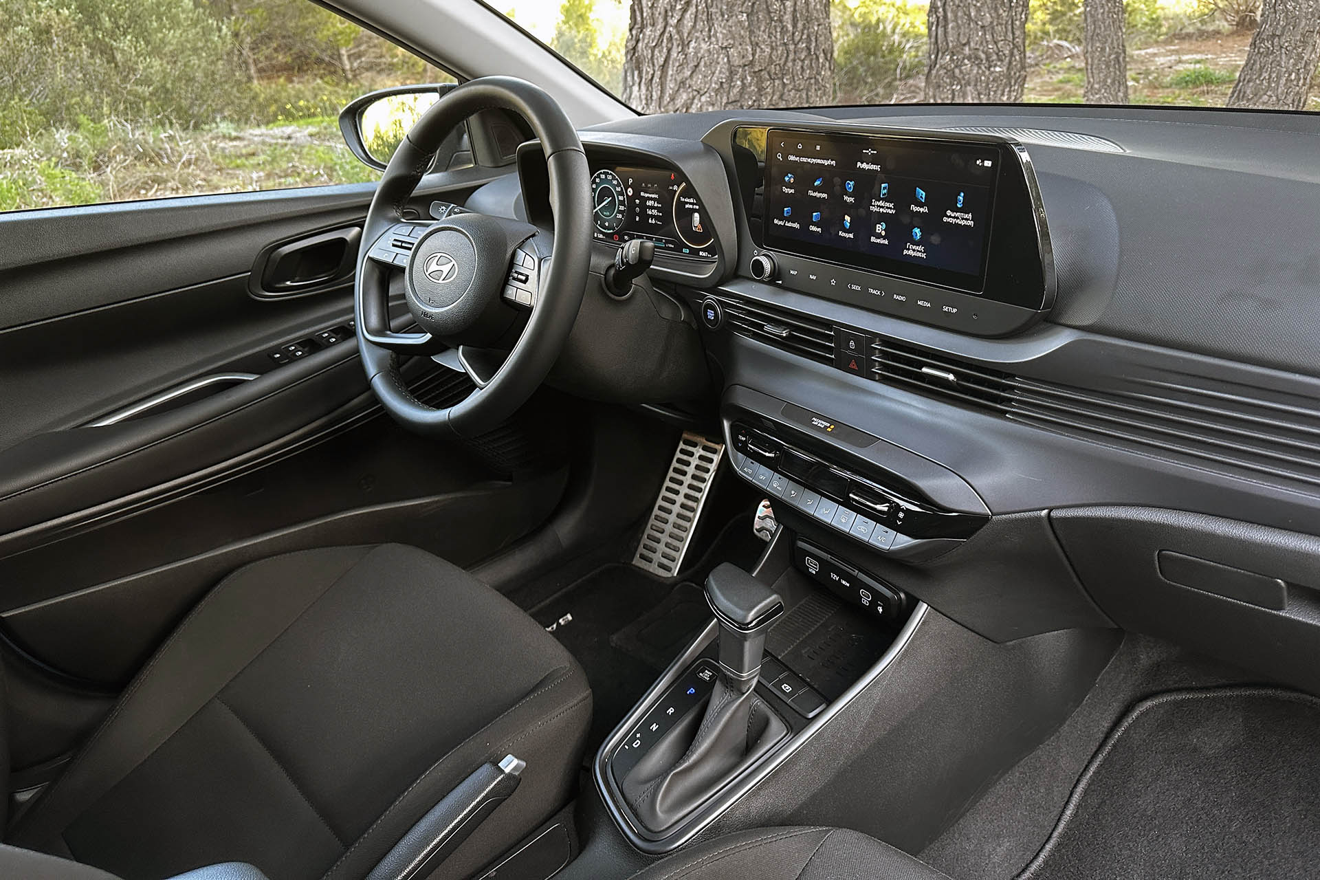 Ένα πλεονέκτημα του ψηλότερο αμαξώματος είναι και η ανυψωμένη θέση οδήγησης, η οποία μπορεί παρόλα αυτά να ρυθμιστεί και πολύ χαμηλά, κάτι που αφενός προσφέρει περισσότερο χώρο για υψηλότερα άτομα, αφετέρου υπάρχουν ακόμη κάποιοι από εμάς που το προτιμούν. Τα υφασμάτινα καθίσματα εκπλήσσουν ευχάριστα με την καλή πλευρική στήριξη που προσφέρουν.