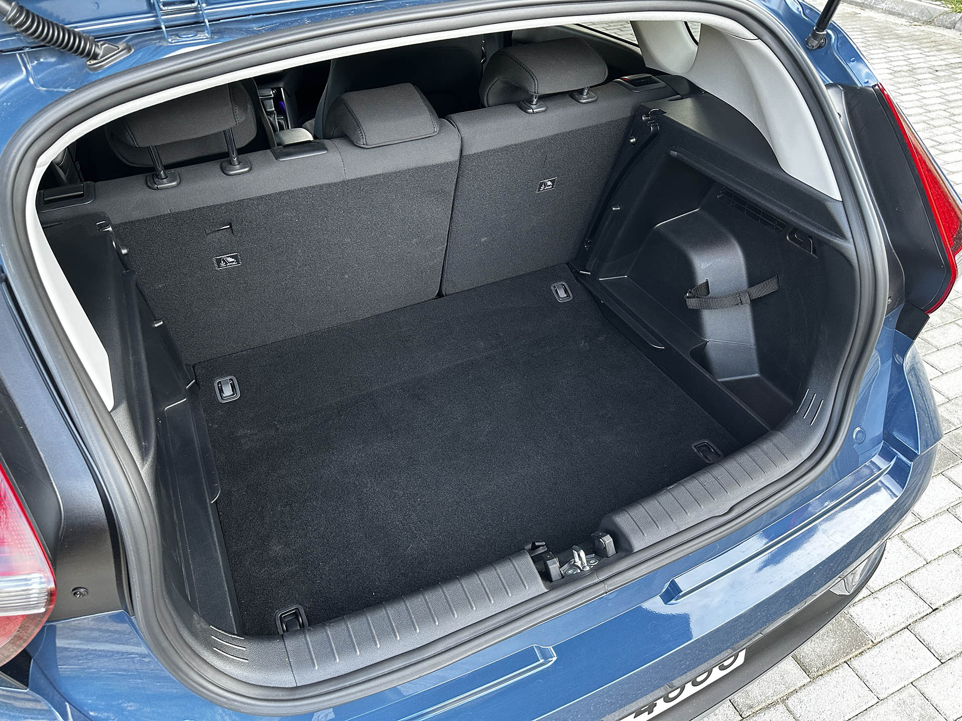 Ο χώρος αποσκευών μπορεί να καλύψει τις ανάγκες ακόμη και μιας μικρής οικογένειας. Έχει όγκο 411 λίτρων, τα οποία επεκτείνονται σε 1.205 λτ. με τα πίσω καθίσματα αναδιπλωμένα. Η εταζέρα προσφέρει μία έξυπνη και πρακτική λύση για την αποθήκευσή της χωρίς να την αφαιρέσετε, με ράγες που την κάνουν να εφάπτεται στην πλάτη των πίσω καθισμάτων. Στο χώρο που κανονικά θα βρισκόταν ο εφεδρικός τροχός, τέλος, στεγάζεται η μπαταρία του ήπια υβριδικού συστήματος 48V.