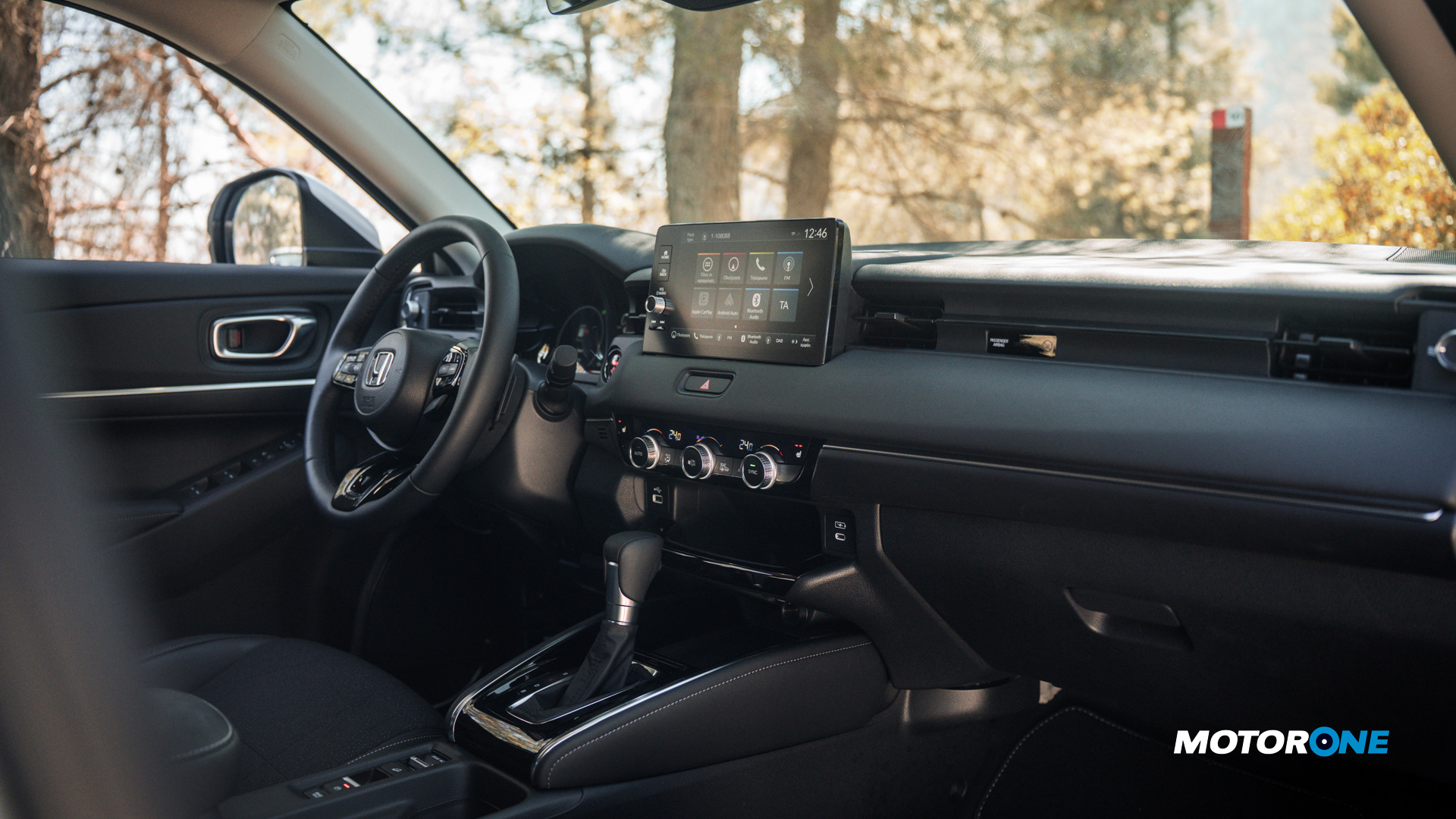 Οι μεγάλες γυάλινες επιφάνειες που περιτριγυρίζουν την φωτεινή καμπίνα συμβάλλουν στο ταξιδιάρικο περιβάλλον που προκύπτει από μια χωροταξική πληθωρικότητα. Μια ενήλικη παρέα δεν θα αργήσει να αναγνωρίσει τις μεταφορικές δυνατότητες του ΗR-V, ενώ το ευχάριστο σαλόνι προσφέρει bonus φωτεινότητα και ευφυείς αποθηκευτικούς χώρους, καθώς και θύρες σύνδεσης και φόρτισης USB-Α και USB-C.