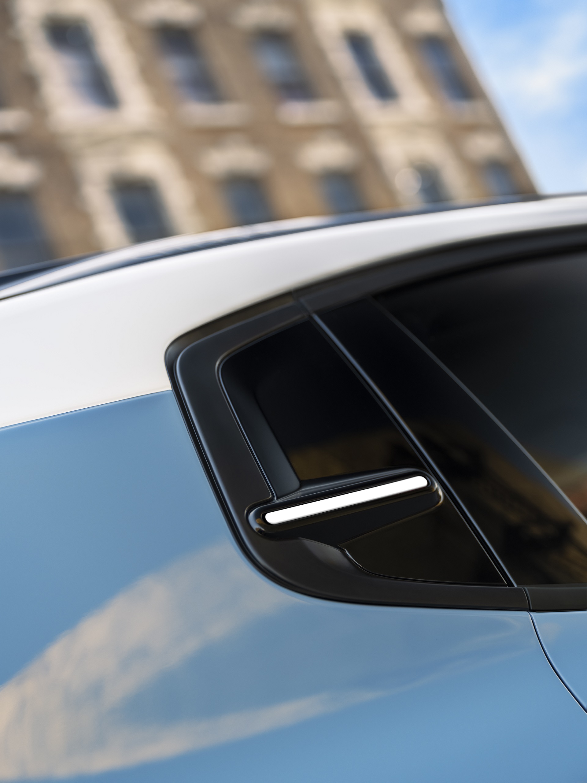 Το μικρό σε μήκος, αλλά ψηλό καπό διαθέτει σμιλευμένες επιφάνειες, ενώ το παρμπρίζ είναι μεγαλύτερο και πιο όρθιο. Στο πλαϊνό προφίλ είναι ορατές και πάλι οι σμιλευμένες γραμμές, οι οποίες περνούν στα νέα χαρακτηριστικά φωτιστικά σώματα και τις λεπτές πτυχώσεις στα πάνελ των θυρών.
