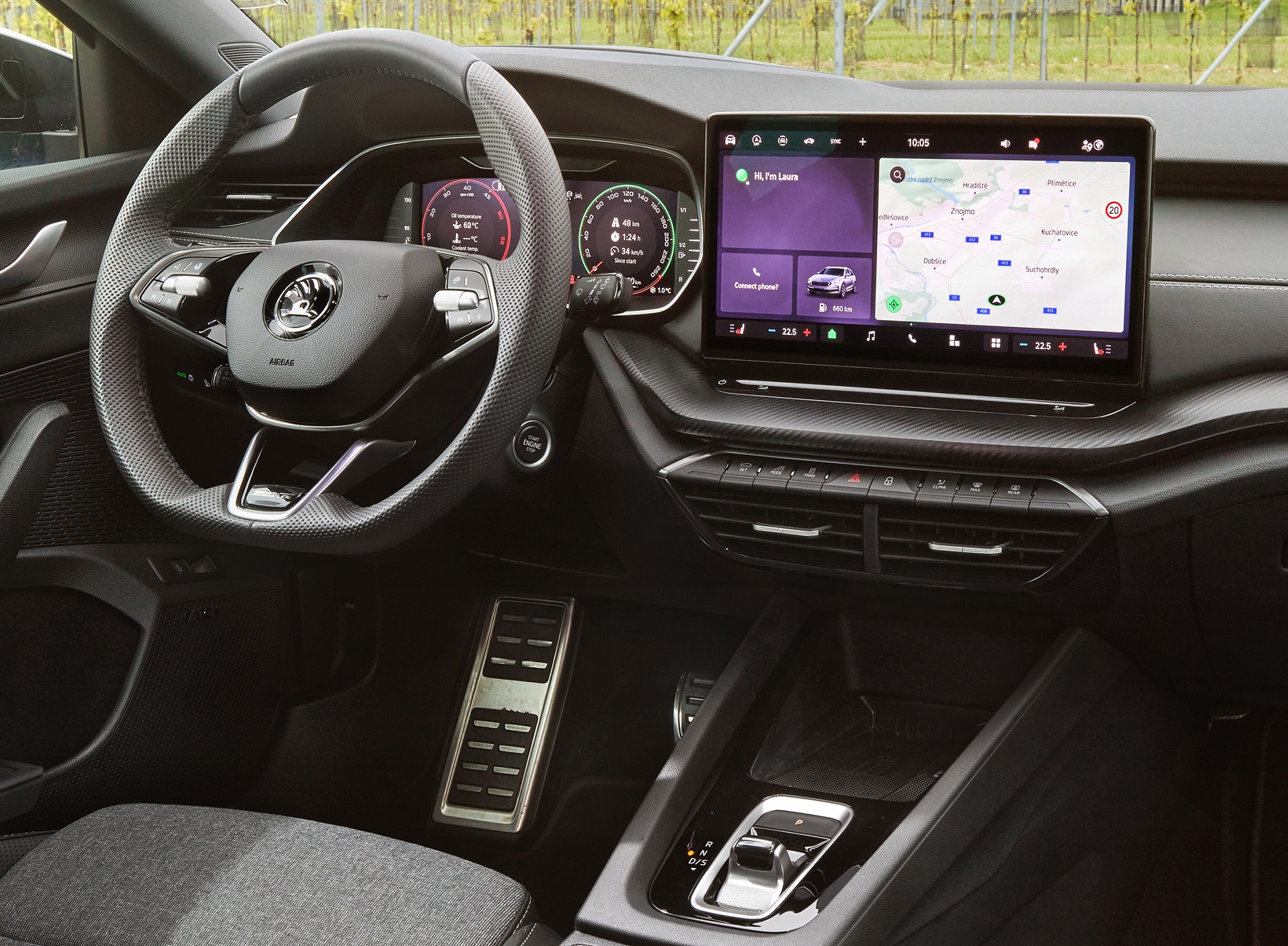 Οι θύρες USB-C προσφέρουν μεγαλύτερη ισχύ φόρτισης, παρέχοντας πλέον 45 Watt. Το Phone Box διαθέτει πλέον επίσης πιο ισχυρή ασύρματη φόρτιση με απόδοση ισχύος έως 15 Watt και αερισμό. Η νέα Octavia είναι συμβατή με την τελευταία έκδοση της εφαρμογής MySkoda και προσφέρει online κινητές υπηρεσίες και εφαρμογές infotainment. Παραμένει φυσικά σεμιναριακό σε ευρυχωρία, με τους αρχοντικούς του χώρους που δείχνουν στον ανταγωνισμό πώς είναι ένα αυτοκίνητο που σέβεται τους επιβάτες του ακόμα και αν αυτοί παίζουν μπάσκετ σε υψηλό επίπεδο.