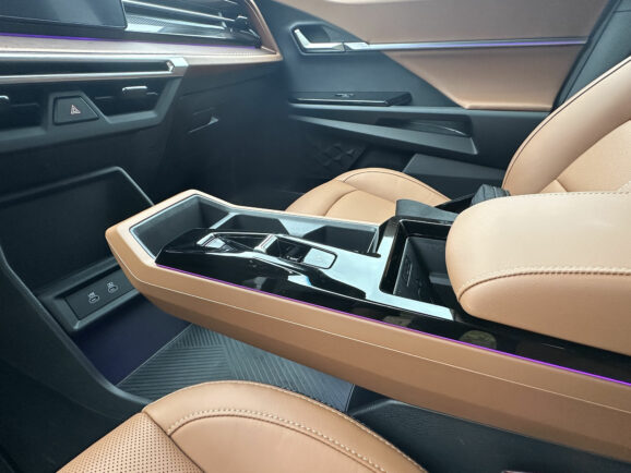 Υπάρχει θέση ασύρματης φόρτισης για smartphone, λίγο παράξενα τοποθετημένη εμπρός από το υποβραχιόνιο, που κρύβει καλό αποθηκευτικό χώρο από κάτω, όπως και τα πάνελ των θυρών. Η αιωρούμενη κεντρική κονσόλα διαθέτει δύο ποτηροθήκες και ανοιχτό χώρο με αντιολησθητική επιφάνεια από κάτω (όπου βρίσκονται και οι θύρες φόρτισης USB-C) για επιπλέον αντικείμενα.
