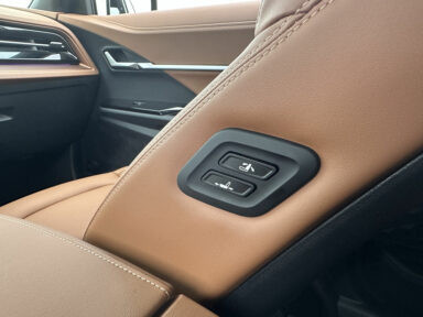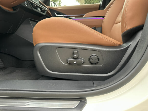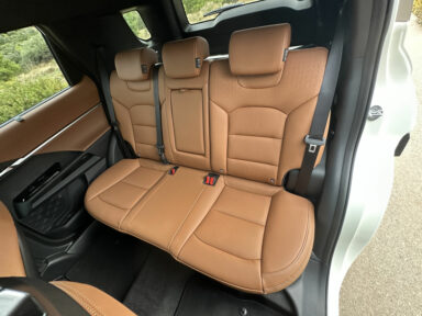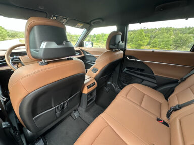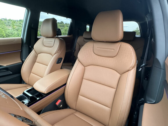 Τα καθίσματα είναι άνετα, ηλεκτρικά ρυθμιζόμενα, θερμαινόμενα και -πολύ καλά- αεριζόμενα, κρίσιμος παράγοντας για τα θερμά καλοκαίρια της Ελλάδας. Τα εμπρός καθίσματα διαθέτουν στο πλάι βολικούς διακόπτες για τη ρύθμιση της πλάτης και της έδρας τους. Πίσω από το προσκέφαλο, διαθέτουν επίσης κρεμάστρες για ρούχα. Στο θερμαινόμενο flat bottom τιμόνι σχεδιασμού διπλού D μας έκανε εντύπωση ότι έχει το διάτρητο δέρμα στο επάνω μέρος της -μεγάλης- στεφάνης και όχι στα πλαϊνά όπου τοποθετεί ο οδηγός τα χέρια του, όπως συνηθίζεται.