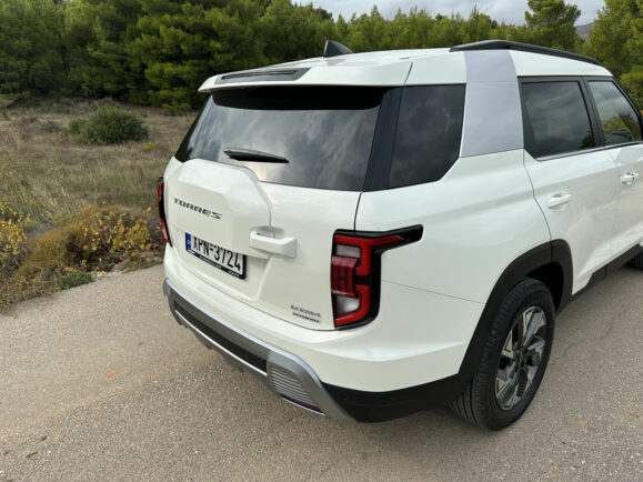 Σκληροτράχηλο στην όψη είναι και το D-SUV που προτάσσει η KGM, το Torres, το οποίο μόλις κυκλοφόρησε και σε Hybrid έκδοση, η οποία μειώνει την κατανάλωση καυσίμου, ιδίως στις αστικές μετακινήσεις.