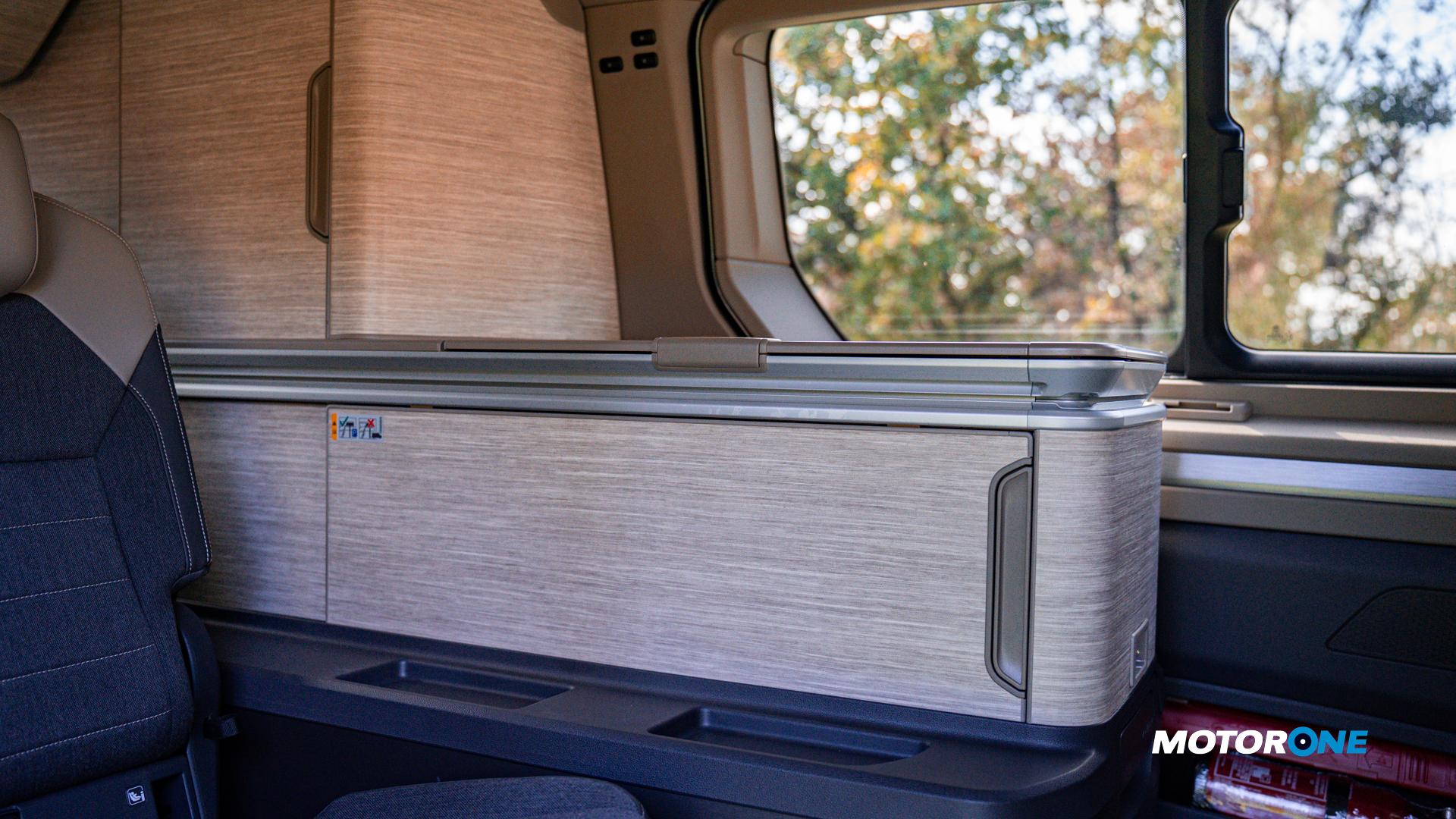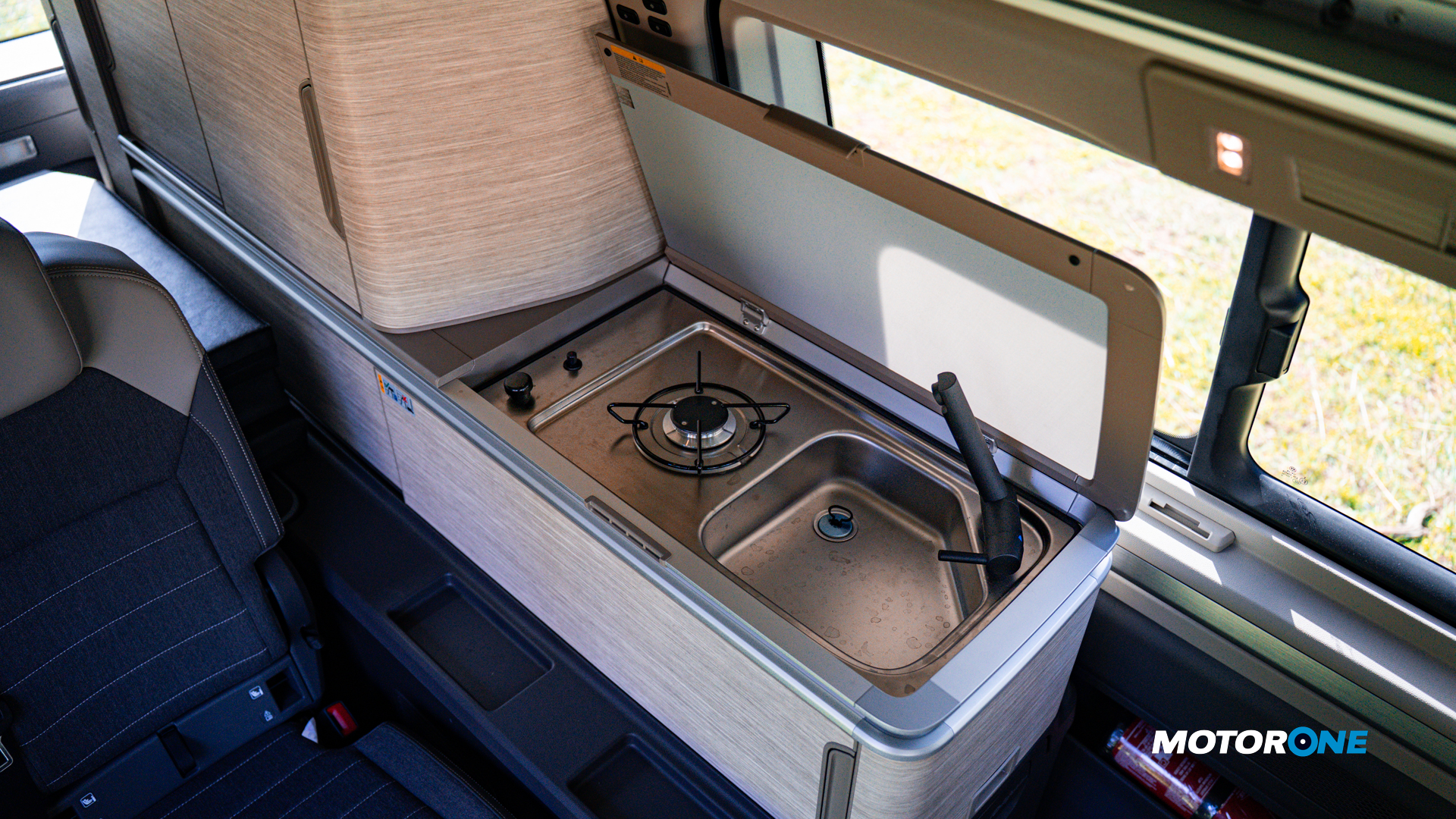 Φυσικά η εκμετάλλευση και των πιο μικρών και απρόσμενων χώρων προκαλεί θαυμασμό όταν διαπιστώνεις την ευφυΐα των σχεδιαστών. Όπως για παράδειγμα τις καρέκλες εξωτερικού χώρου που κρύβονται στην εσωτερική επένδυση της 5ης πόρτας και το τραπέζι που βρίσκει με την σειρά του θέση συρταρωτή κάτω από την υποτιθέμενη εταζέρα του χώρου αποσκευών. Αναμενόμενοι οι αποθηκευτικοί χώροι για ρουχισμό και τρόφιμα, διαθέσιμη η μίνι κουζίνα με εστία υγραερίου και νιπτήρα, ενώ φυσικά δεν λείπει και ένα ευρύχωρο συρταρωτό ευρύχωρο και αποδοτικό ψυγείο. Στα δεδομένα φυσικά και η ντουζιέρα για χρήση εκτός της καμπίνας, η χημική τουαλέτα, το σύστημα κλιματισμού θέρμανσης και η πτυσσόμενη τέντα (αριστερά) με αντηρίδες για ακόμα καλύτερη στήριξη στον τόπο κατασκήνωσης. Όρεξη για εκδρομή και φύση να υπάρχει και η Volkswagen δεν αφήνει αδιάφορο τον ενδιαφερόμενο με τον προαιρετικό camper εξοπλισμό της.