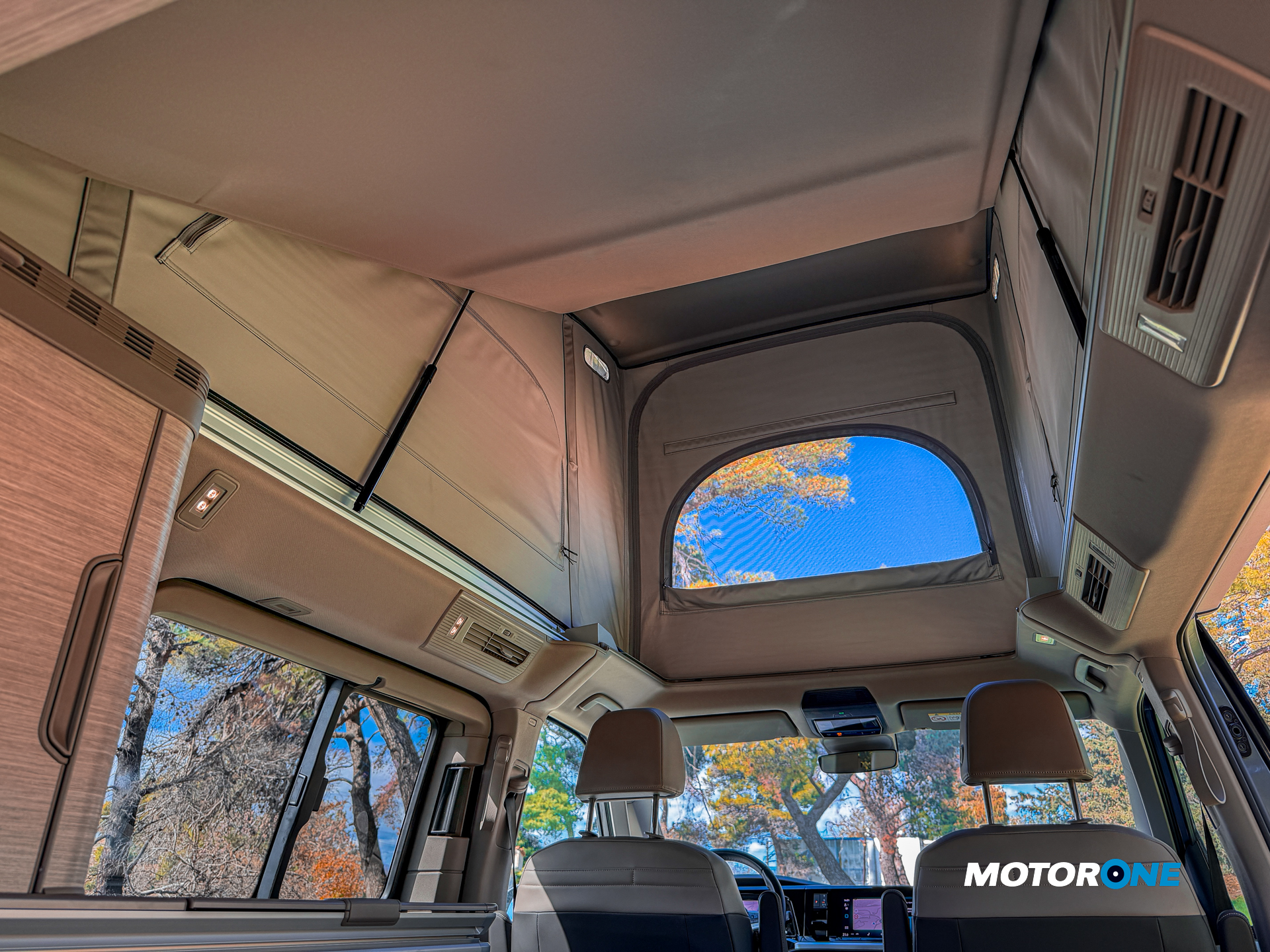 Για την εκδρομική φύση του τροποποιημένου mini camper της Volkswagen, ο περιορισμός της επιβατικής του μεταφοράς σε τέσσερις, συνοδεύεται και με το γεγονός ότι μπορεί να τους διατηρήσει για διανυκτέρευση. Οι δύο στο χώρο καμπίνας και στο διαμορφώσιμο κρεβάτι που δημιουργείται από ακροβατικά των πίσω καθισμάτων συνοδεία στρώματος που εδρεύει στην θέση «χώρος αποσκευών». Οι άλλοι δύο στο ευρύχωρο πτυσσόμενο «αίθριο» που ανοίγει ηλεκτρικά και προσφέρει μια ευάερη κουκέτα στην οροφή με ανέσεις χώρου και υπηρεσιών (φώτα, πρίζες, θέσεις αποθηκευτικές και φόρτισης). Παράλληλα, με το κρεβάτι ψηλά στην οροφή, δημιουργεί ύψος στην καμπίνα ώστε να κυκλοφορούν όρθιοι οι επιβάτες όταν δεν ξαπλώνουν.