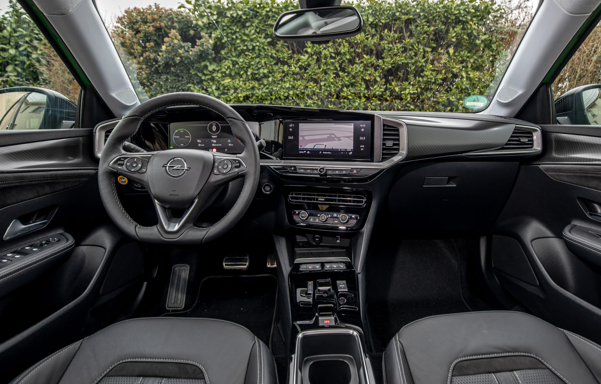 Το αυτοκίνητο δοκιμής φέρει το κορυφαίο επίπεδο εξοπλισμού Ultimate, με τροχούς 18 ιντσών, πλαίσιο χρωμίου στην μάσκα Opel Vizor, ασημί προστατευτικές ποδιές στον εμπρός και τον πίσω προφυλακτήρα. Στο εσωτερικό συναντάμε το ψηφιακό ταμπλό Opel Pure Panel με τις δύο οθόνες, επενδύσεις από δέρμα και Alcantara, πλήρως ρυθμιζόμενα και θερμαινόμενα καθίσματα οδηγού-συνοδηγού, θερμαινόμενο τιμόνι.