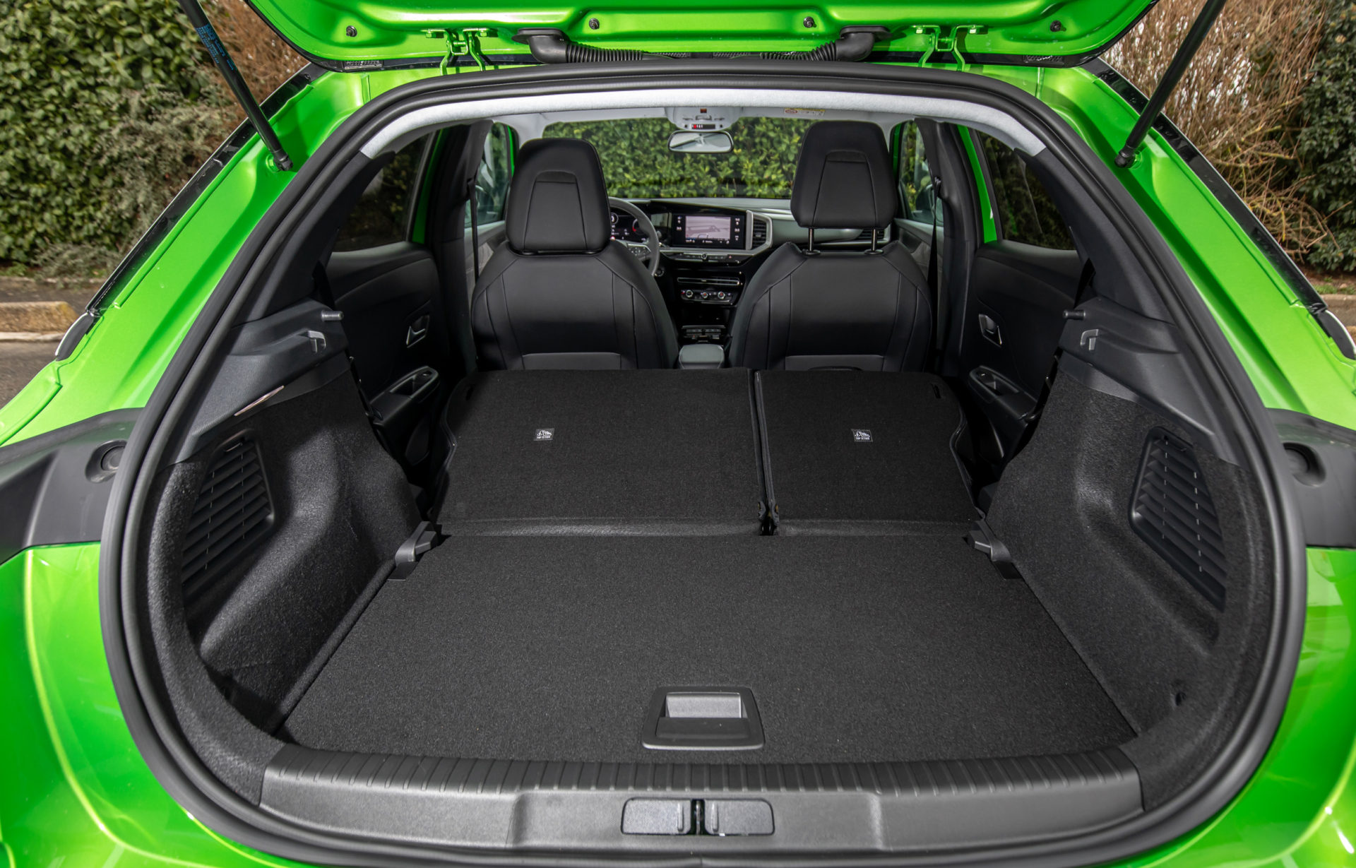 Μέσω των ρυθμίσεων του καθίσματος και του τιμονιού, ο οδηγός θα βρει εύκολα τη θέση που ταιριάζει στο σωματότυπό του, ενώ απολαμβάνει καλή πλευρική στήριξη (από το προαιρετικό σπορ κάθισμα) και ικανοποιητική ορατότητα προς τα μπροστά και το πλάι. Και ενώ τα μικρά πίσω παράθυρα και οι φαρδιές κολώνες θα τον δυσκολέψουν στις μανούβρες, η κάμερα οπισθοπορείας έρχεται να δώσει τη λύση. Δύο ενήλικες θα βολευτούν στα πίσω καθίσματα, όμως το μικρό άνοιγμα καθυστερεί το «μπες-βγες». Ο χώρος αποσκευών των 310 λίτρων (με το διπλό δάπεδο) παίρνει καλό… βαθμό για ηλεκτρικό αυτοκίνητο, καθώς η μπαταρία δεν περιορίζει σημαντικά τον όγκο του από τα 350 λίτρα των συμβατικών εκδόσεων.