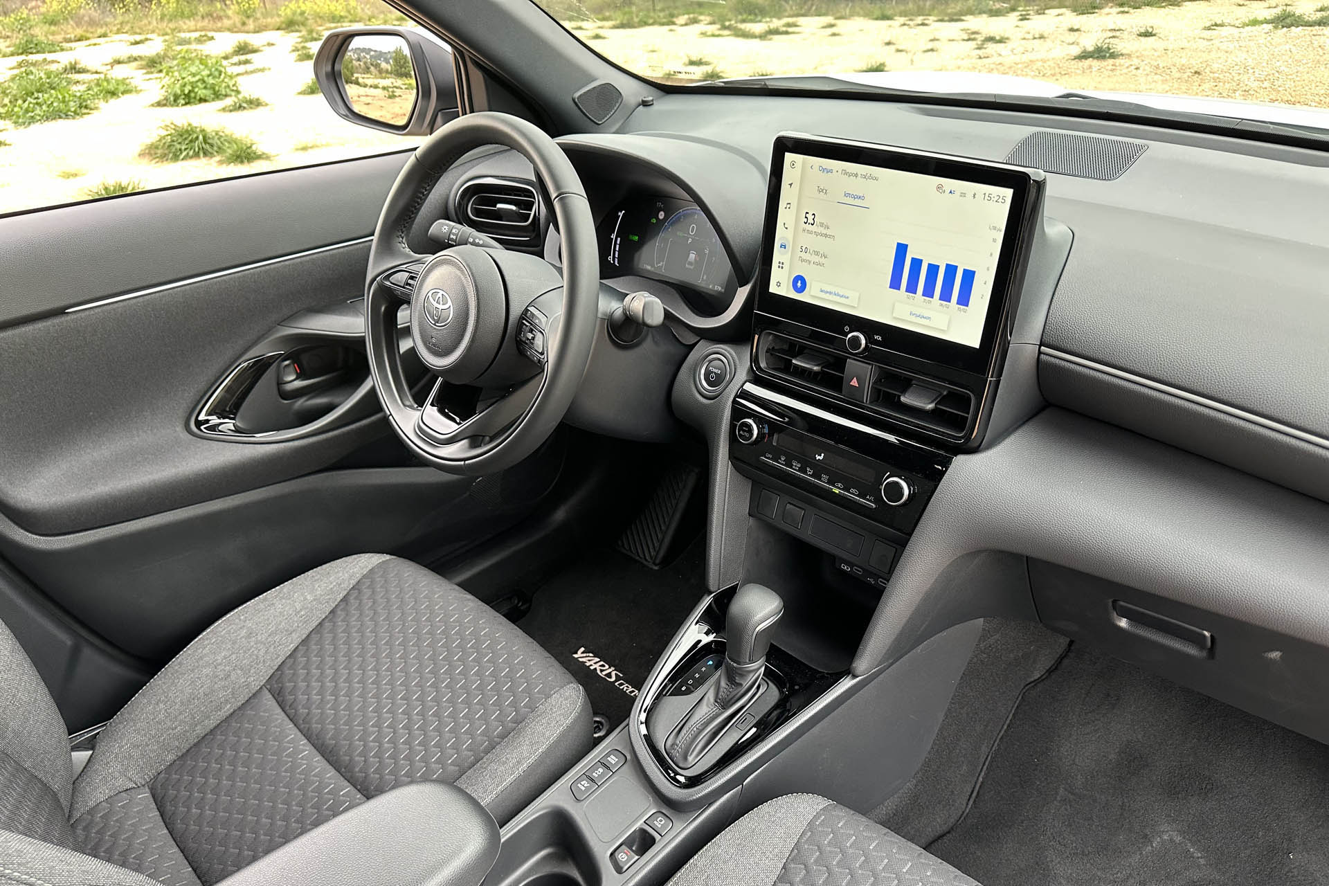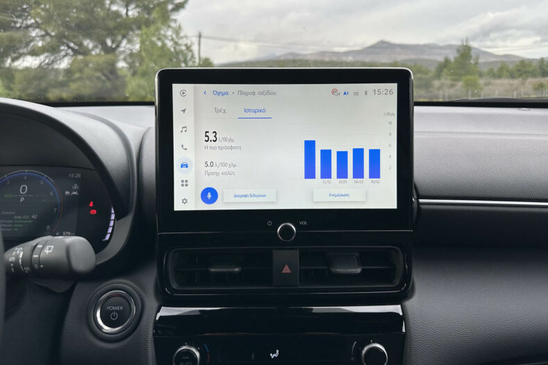 Η εξοπλιστική έκδοση Style που είχαμε εμείς στα χέρια μας, βρίσκεται ακριβώς στο μέσο της συνολικής γκάμας του Yaris Cross, αλλά αποτελεί την εισαγωγική για την πιο ισχυρή ανανεωμένη έκδοση των 130 ίππων.