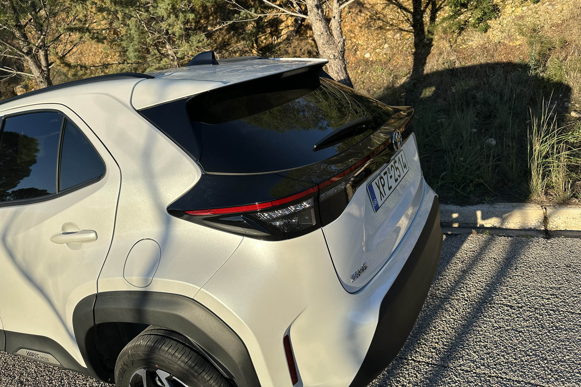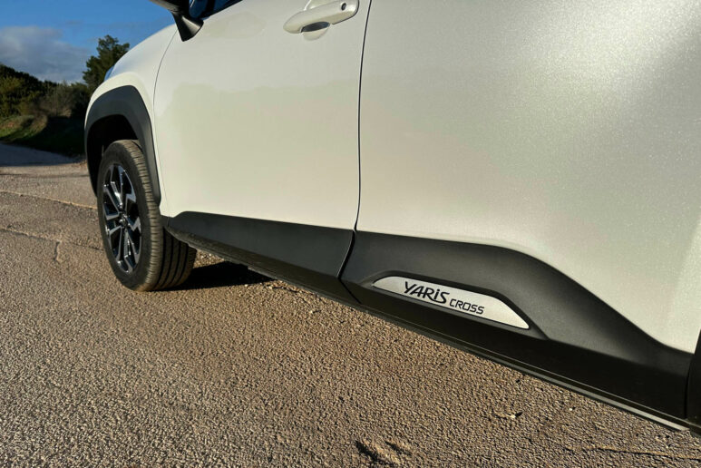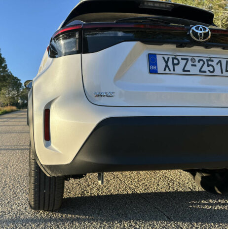 Ωστόσο έχεις συνηθίσει πλέον την ιδιότυπη μορφή του, η οποία σε κερδίζει σταδιακά όσο «συναναστρέφεσαι» μαζί του. Με δυναμική στάση και μεγάλη απόσταση 17 εκατοστών από το έδαφος και τη σήμανση Yaris Cross στο κάτω μέρος των πίσω θυρών και στα μαρσπιέ των εμπρός).