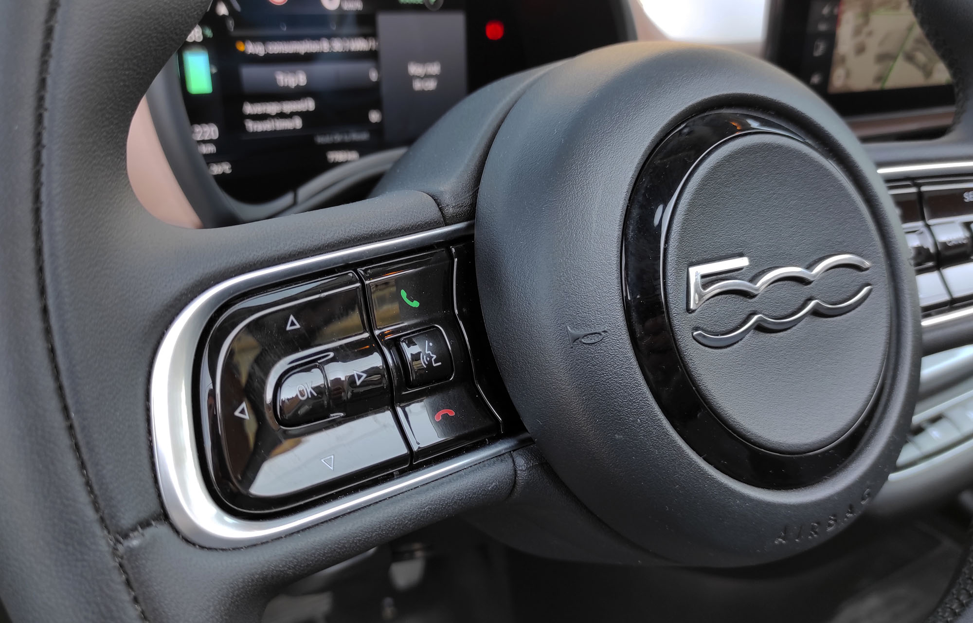 Πίσω από το όμορφο δερμάτινο τιμόνι με τις δύο ακτίνες και τα χειριστήρια για τις επιμέρους λειτουργίες του αυτοκινήτου, ο οδηγός απολαμβάνει την άνεση και αγχολυτική λειτουργία που προσφέρει το ηλεκτροκίνητο 500e Cabrio. Ο επιλογέας του κιβωτίου ταχυτήτων λάμπει δια της απουσίας του, δίνοντας τη θέση του σε πλήκτρα που είναι τοποθετημένα στην κεντρική κονσόλα. Πιέζοντας το μπουτόν εκκίνησης πίσω από το τιμόνι, η ενεργοποίηση του πίνακα οργάνων είναι αυτό που σε ενημερώνει ότι το ηλεκτρικό 500e είναι σε λειτουργία.