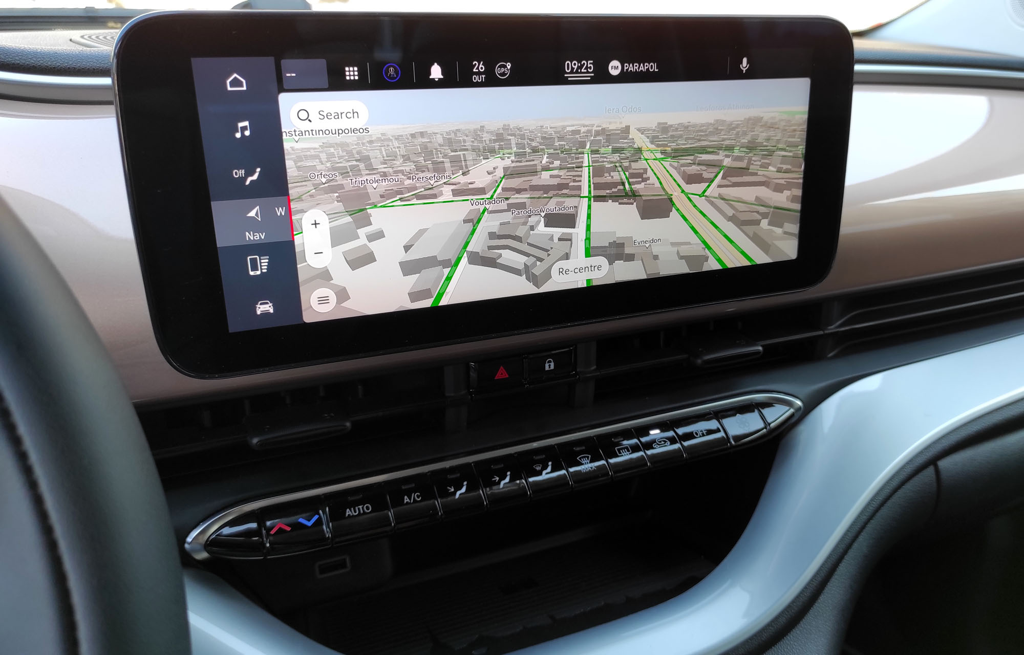 Πρωταγωνιστές στο εσωτερικό είναι ο οδηγός και ο συνοδηγός. Έχουν στη διάθεσή τους ένα προηγμένο τεχνολογικά, με ανάλογη εικόνα εσωτερικό, που δίνει κατευθείαν το στίγμα του μοντέλου. Οι χειρολαβές είναι ηλεκτρικές, με μπουτόν στην κορυφή της πόρτας (υπάρχει και κλασική χειρολαβή μέσα στην τσέπη της πόρτας, για παν ενδεχόμενο), ο πίνακας οργάνων είναι ψηφιακός 7 ιντσών, ενώ η μεγάλη ευρεία οθόνη 10,25 ιντσών του συστήματος πολυμέσων διακοσμεί όμορφα το ταμπλό. Η τελευταία προσφέρει κορυφαία δυνατότητα συνδεσιμότητας με δίκτυα 5G και ασύρματο mirroring του smartphone. Επίσης… υπακούει σε φωνητικές εντολές, ενώ κάνει αναβαθμίσεις over the air (εξ αποστάσεως).
