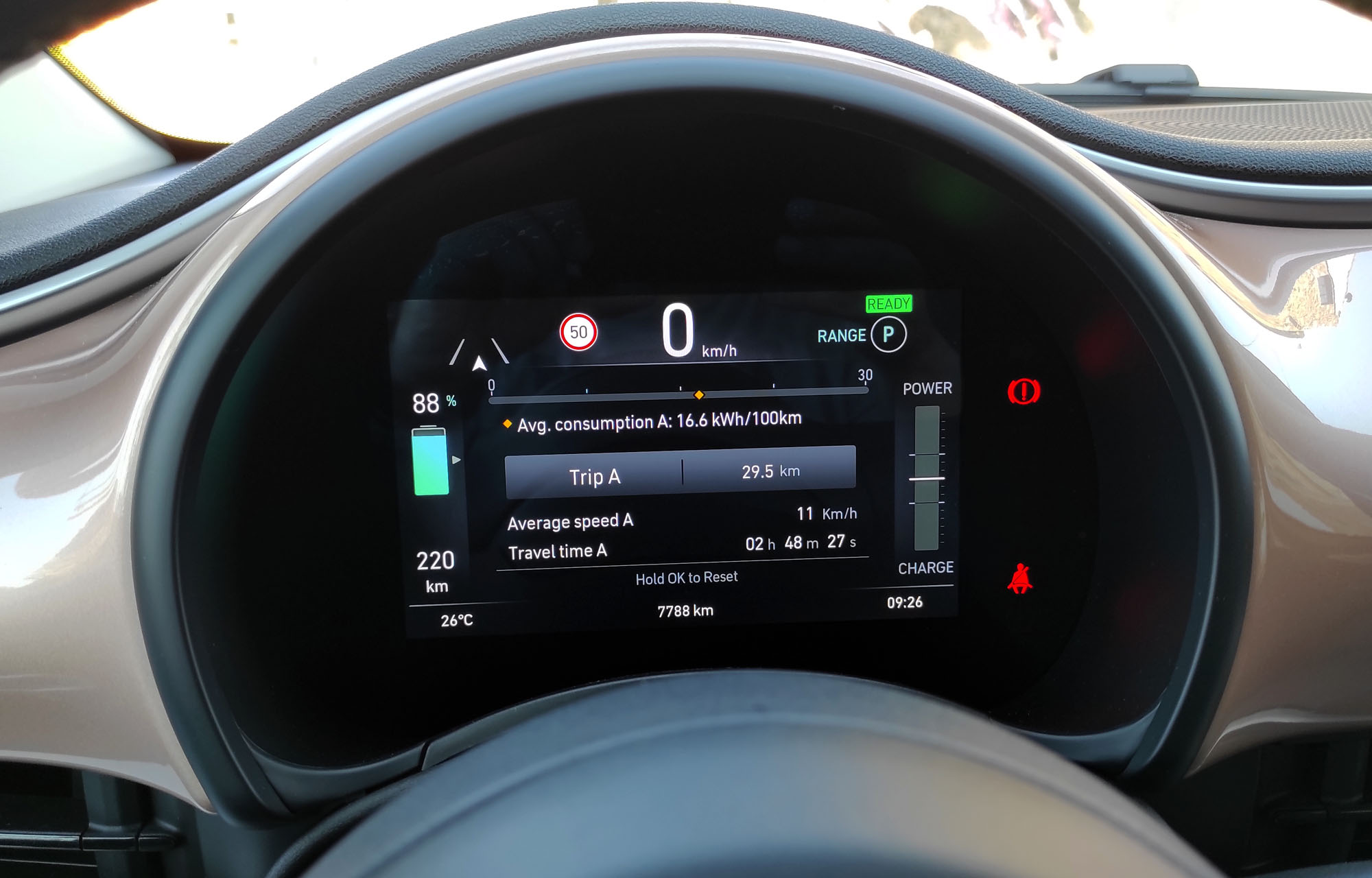 Στην πράξη, μέσα στην πόλη μπορείς να δεις πάνω από 300 χιλιόμετρα με μια φόρτιση, αν αξιοποιήσεις σωστά το σύστημα ανάκτησης, επιλέγοντας το πρόγραμμα οδήγησης Range. Μάλιστα σε αυτό ο οδηγός απολαμβάνει ακόμα πιο ξεκούραστη οδήγηση χάρη στη λειτουργία «one pedal», δηλαδή κάνοντας χρήση μόνο του δεξιού πεντάλ για την επιτάχυνση, αφού το αυτοκίνητο φρενάρει μόνο του κάθε φορά που ο οδηγός σηκώνει το πόδι του από το γκάζι.