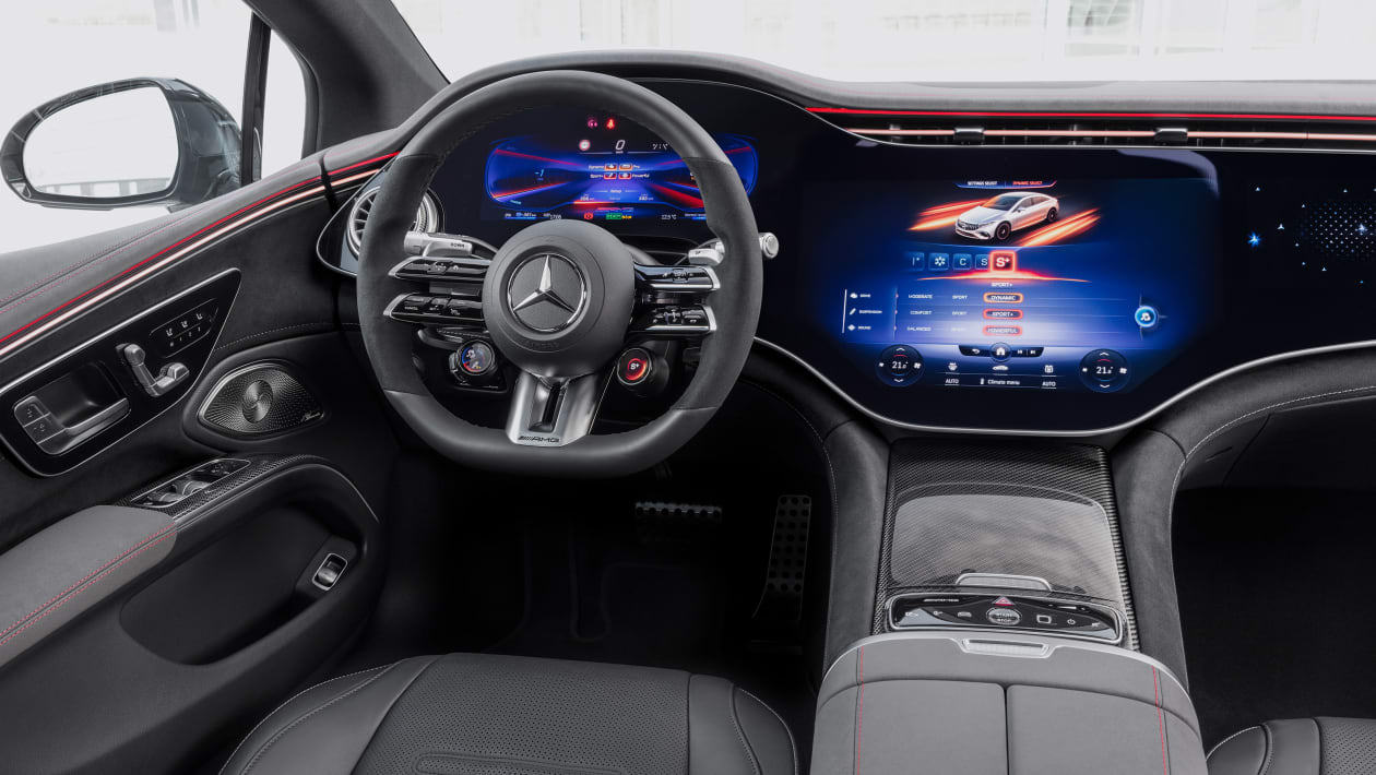 Μια E-Class με άφθονο χώρο, αφού η 5,2 μέτρων EQS 53 διαθέτει χώρο αποσκευών 610 λίτρων και ένα μεγάλο εσωτερικό, με αρκετό χώρο για τα πόδια στο πίσω μέρος και πολλές ξεχωριστές πινελιές AMG, όπως τα σπορ καθίσματα και το σπορ τιμόνι, καθώς και ένα περιστροφικό χειριστήριο για τα προγράμματα οδήγησης.