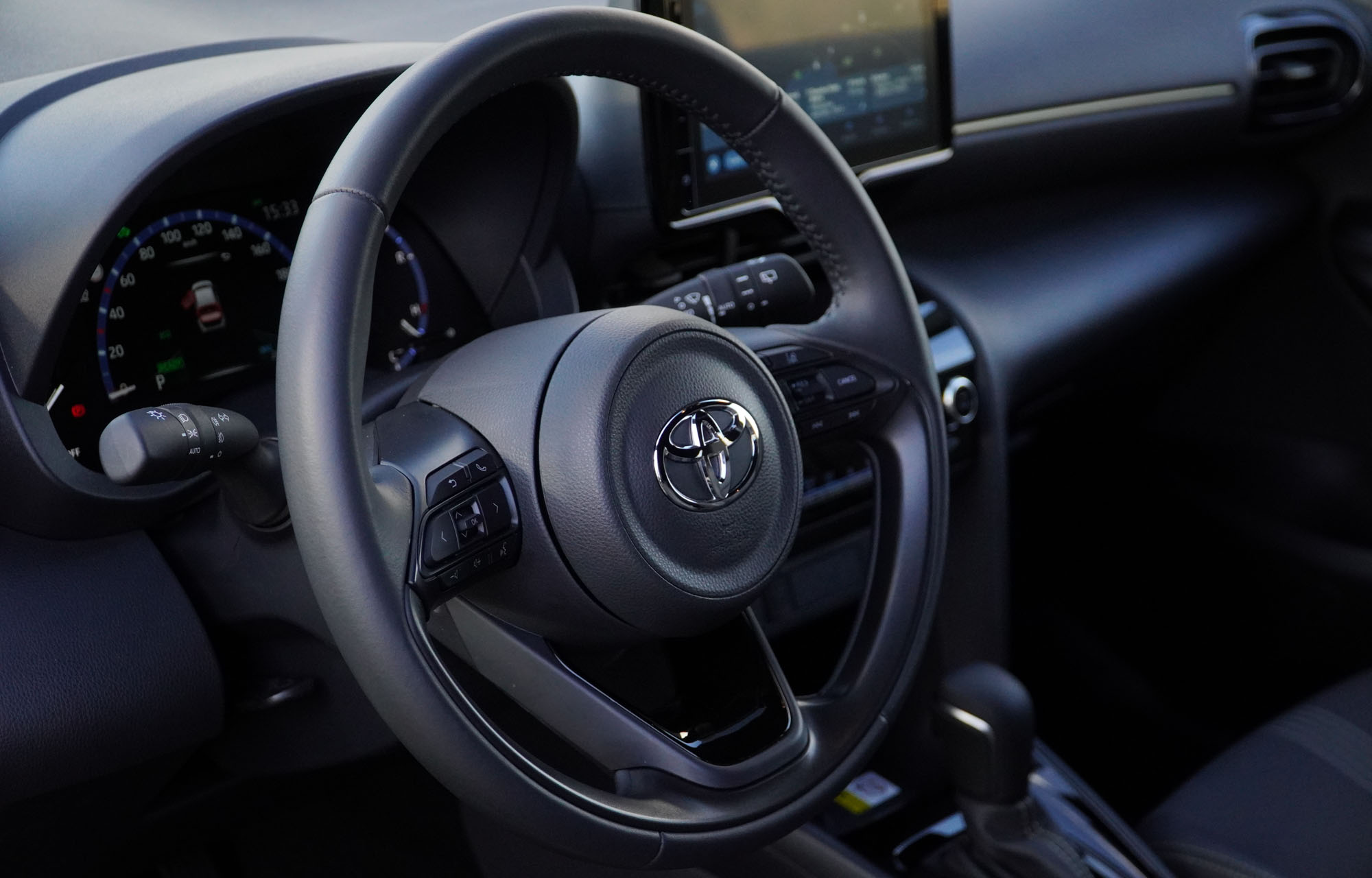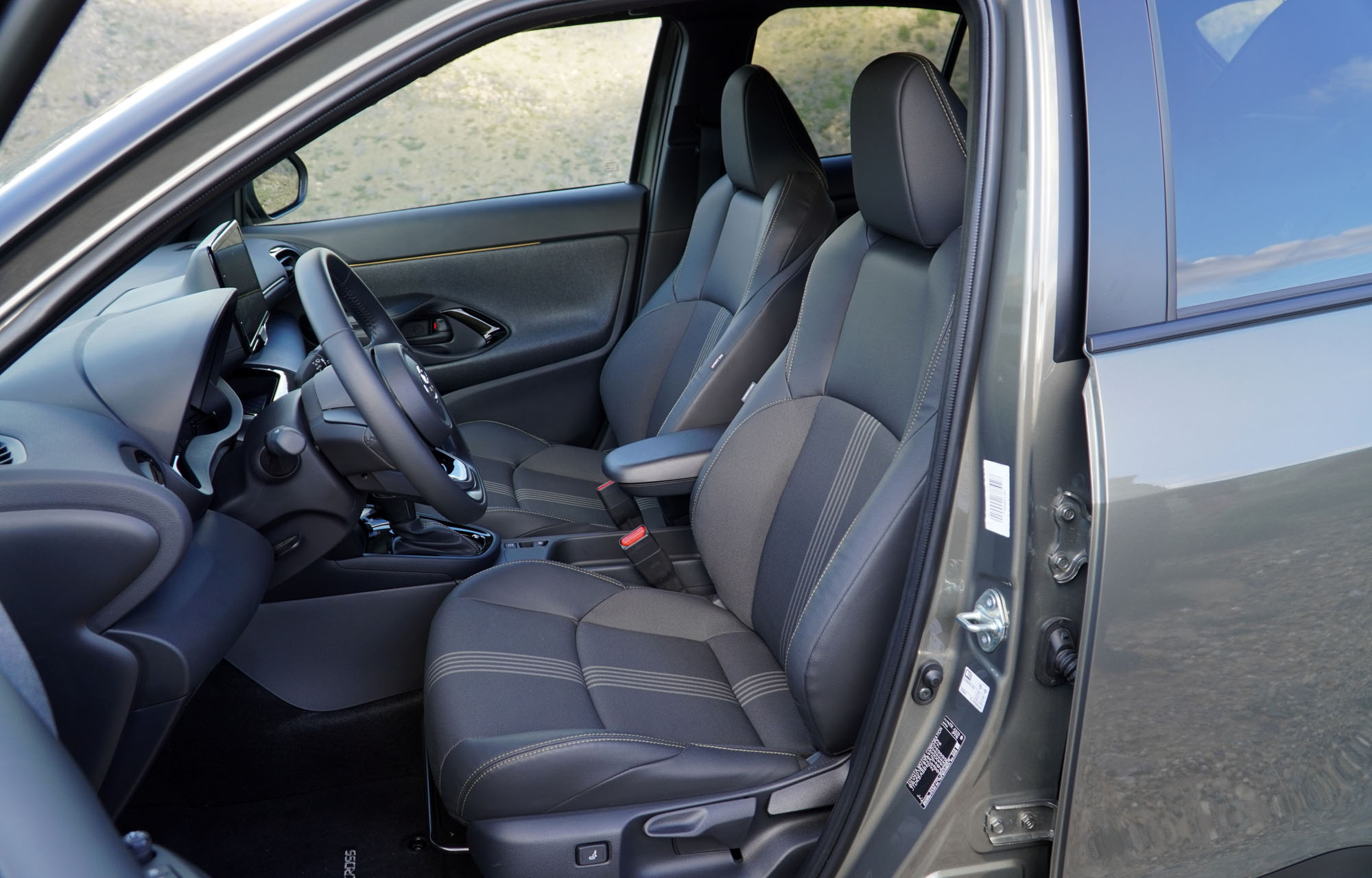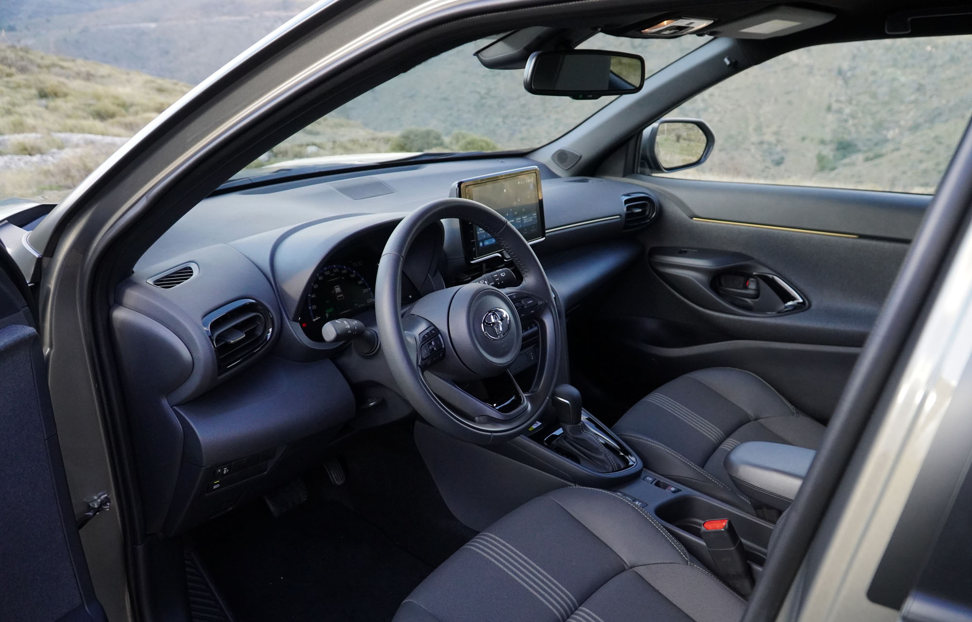 Στο εσωτερικό η εικόνα είναι περισσότερο γνώριμη, με στοιχεία από το Yaris και ξεχωριστές λεπτομέρειες που υπογραμμίζουν την SUV φιλοσοφία του. Κάθεσαι ψηλά, έχοντας απρόσκοπτη ορατότητα προς όλες τις κατευθύνσεις, αφού ακόμα και προς τα πίσω οι μικρές σχετικά τρίτες κολώνες δεν κόβουν κάποια χρήσιμη πληροφορία. Τα υλικά που έχουν χρησιμοποιηθεί για την κατασκευή του Yaris Cross είναι καλής ποιότητας, με μαλακά πλαστικά στα ανώτερα μέρη και πιο σκληρά χαμηλότερα, αλλά με άριστη συναρμογή.
