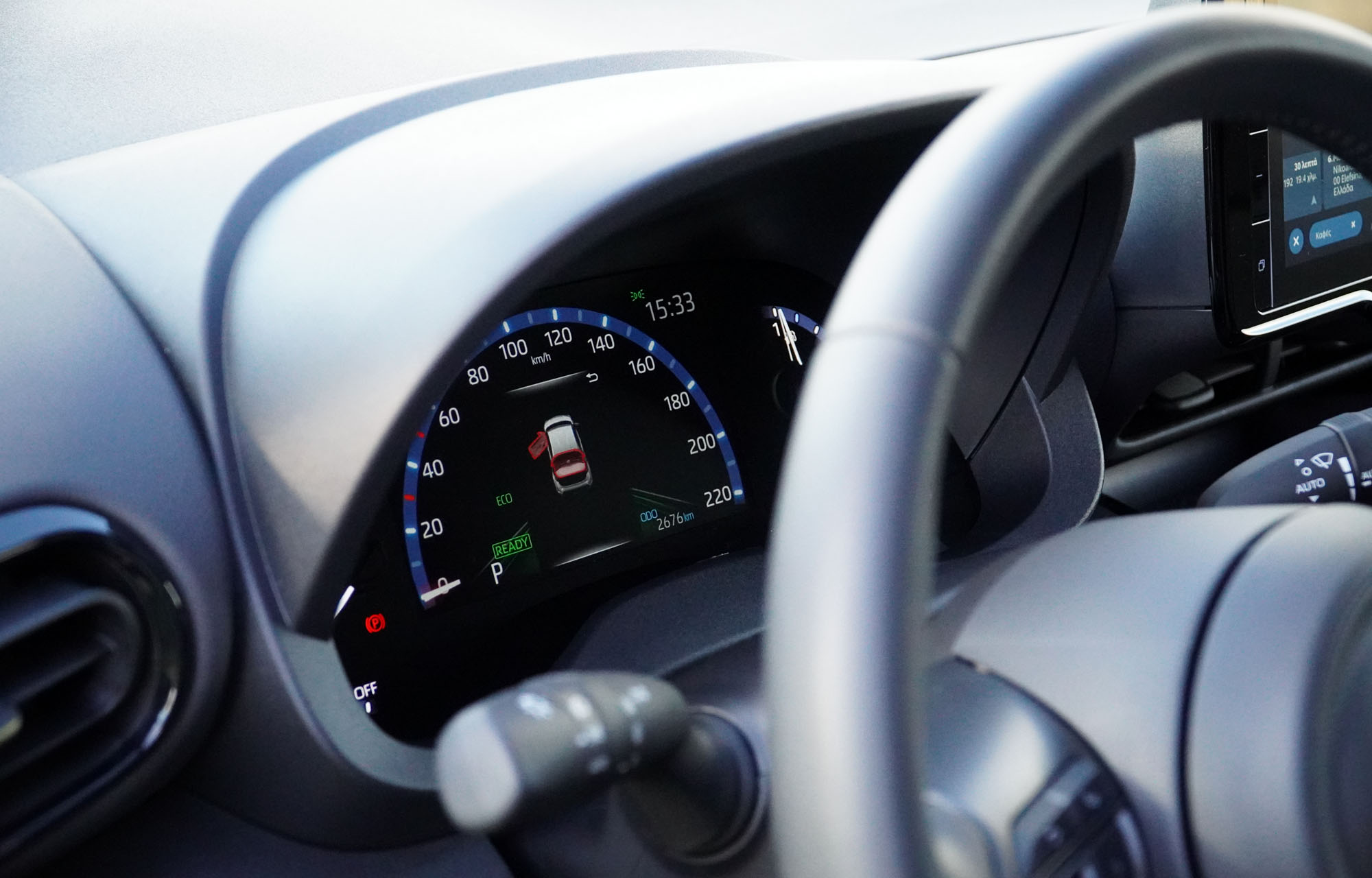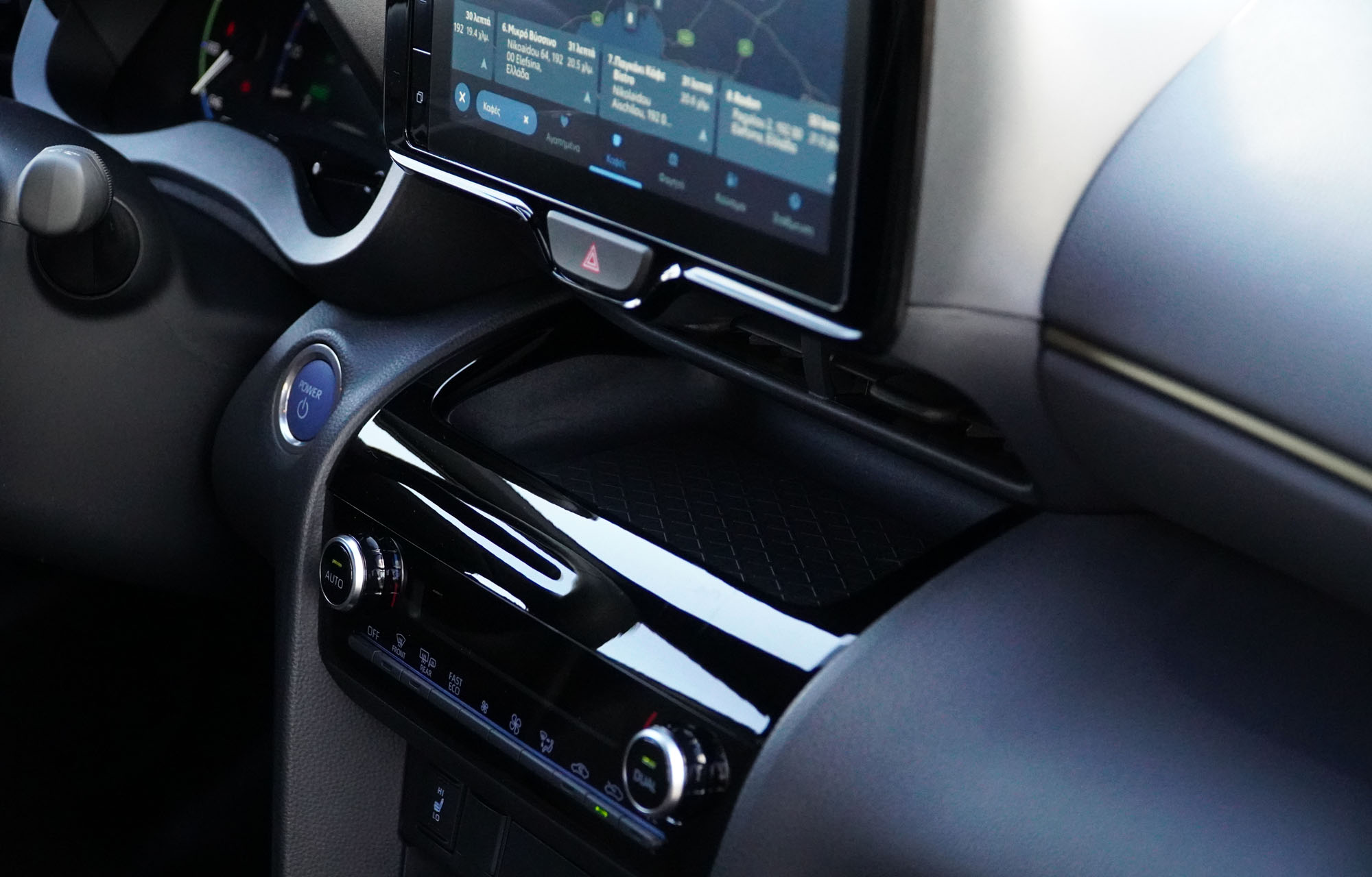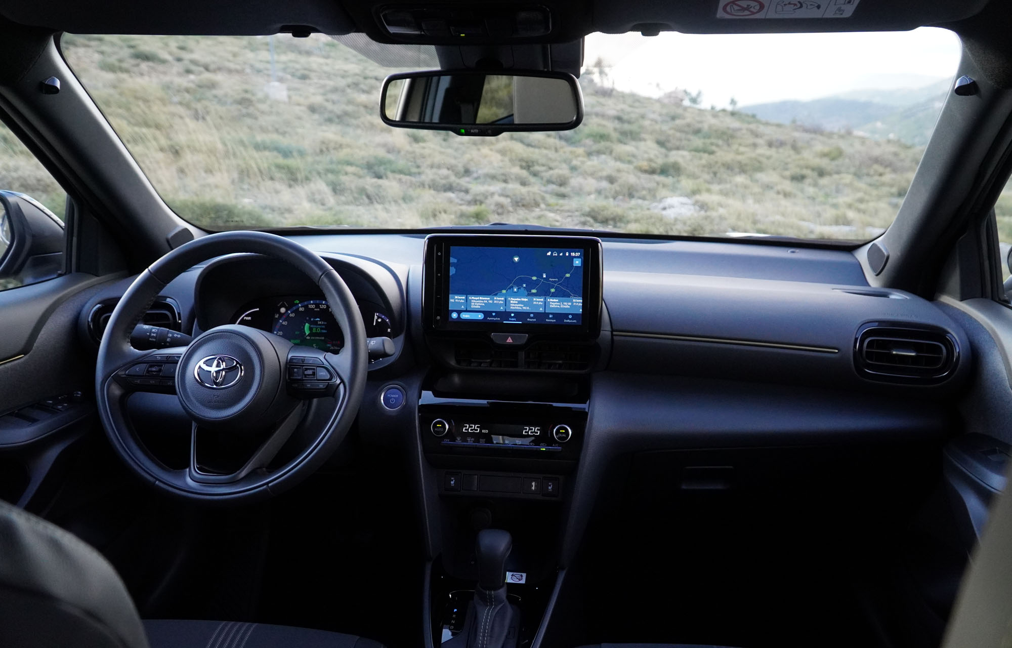 Το περιβάλλον είναι σύγχρονο, με ψηφιακές οθόνες για τον πίνακα οργάνων, αλλά και το σύστημα πολυμέσων. Η τελευταία οθόνη αφής 9 ιντσών είναι νέα, με ελληνικό μενού, «φρέσκο» και γρήγορο λογισμικό, που κάνει εύκολη τη χρήση του και πολλές πληροφορίες. Στην υβριδική έκδοση της δοκιμής μας αφορούν και τη λειτουργία των κινητήρων, θερμικού και ηλεκτρικού, με αναπαράσταση της ροής της ενέργειας.