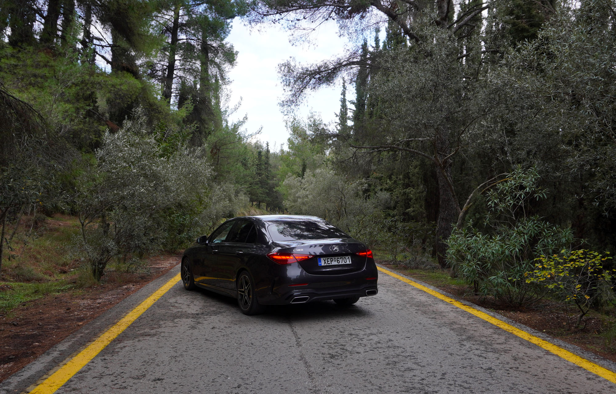 Από την άλλη και όσον αφορά τους διαθέσιμους χώρους, το μεγάλο μεταξόνιο που αγγίζει τα 2.865 χιλ. εκπληρώνει τις υποσχέσεις που αφήνει σε θεωρητικό επίπεδο, με την απλή ανάγνωση του αριθμού. Η άνεση είναι καλύτερη ακόμα και από αυτή που πρόσφερε στην προηγούμενη γενιά της η C-Class, με αρκετό αέρα για τα πόδια, το κεφάλι, αλλά και τους ώμους. Ο ατμοσφαιρικός φωτισμός με οπτικές ίνες ανήκει στο βασικό εξοπλισμό και διαμορφώνει μια ζεστή ατμόσφαιρα στην άνετη καμπίνα. Τέλος, ο χώρος αποσκευών ανέρχεται στα 455 λίτρα.