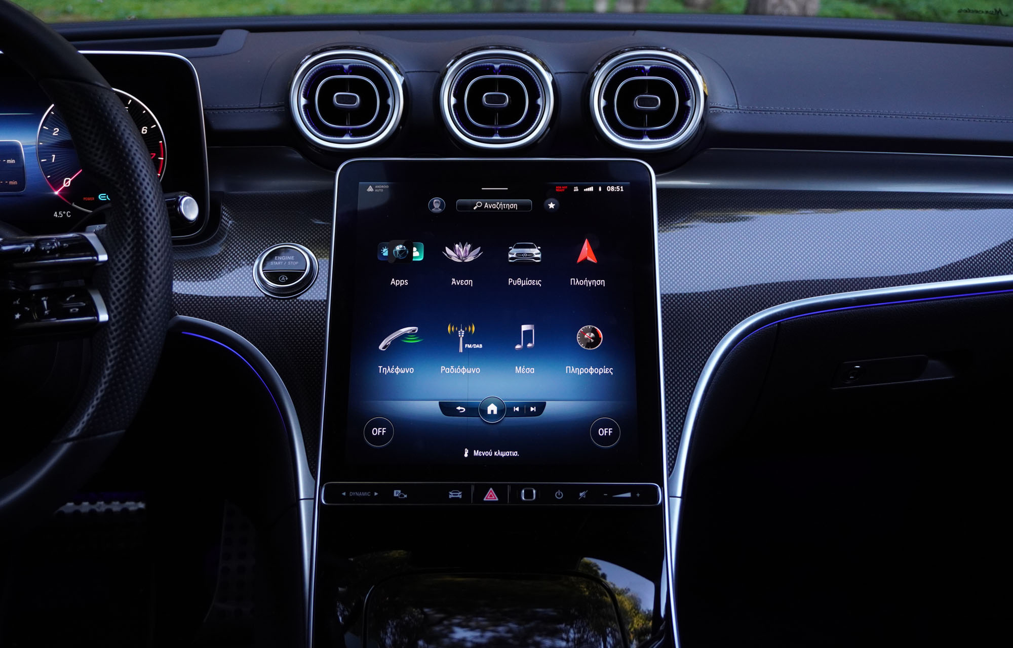 Όπως και η κορυφαία S-Class έτσι και η νέα C-Class είναι εξοπλισμένη με το MBUX (Mercedes-Benz User Experience), δεύτερης γενιάς, που παρουσιάζεται σημαντικά εξελιγμένο, τόσο σε επίπεδο hardware όσο και λογισμικού. Μιλάει… άπταιστα ελληνικά και προσφέρει παράλληλα δυνατότητα εξατομίκευσης ανάλογα με το χρήστη, αναγνωρίζοντας το δακτυλικό αποτύπωμα και προσαρμόζοντας όλες τις παραμέτρους ανάλογα με τις ανάγκες και επιθυμίες του καθενός.