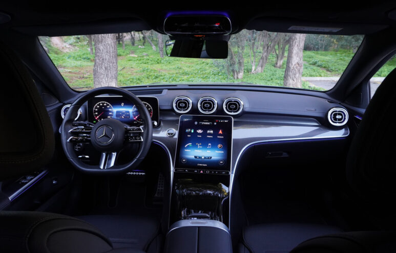 Αν λίγο έως πολύ η ποιότητα της Mercedes είναι γνωστή και αναμενόμενη, ειδικά σε ένα μοντέλο όπως η C-Class, αυτό που δεν περιμένεις είναι η εικόνα που έχει το εσωτερικό της. Ξεχάστε όσα μέχρι σήμερα γνωρίζατε, αφού η νέα -εμπορική- ναυαρχίδα της Mercedes άλλαξε εντελώς. Το ταμπλό είναι χωρισμένο σε δύο τμήματα, με τις ψηφιακές οθόνες να κυριαρχούν. Ειδικά αυτή του συστήματος πολυμέσων, με διάσταση 11,9 ιντσών και κάθετη διάταξη, που θυμίζει τάμπλετ. Όχι μόνο αισθητικά, αλλά και σε λειτουργία. Άμεση απόκριση, με αμέτρητες δυνατότητες και εξαιρετική ευκρίνεια.