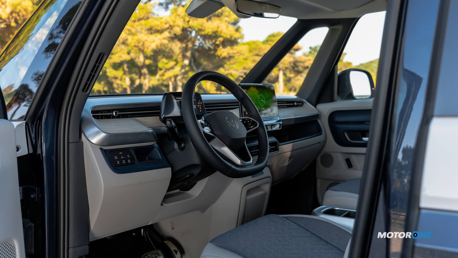 Το εσωτερικό έχει ποιοτικά στοιχεία και παροχές της οικογένειας ID., όπως οι δυο ψηφιακές οθόνες, αλλά ξεχωρίζει στιλιστικά, προσφέρει έξυπνες αποθηκευτικές λύσεις και γενικότερα στοιχεία που ισοδυναμούν με σχεδιαστική έμπνευση. Γενικά σου προσφέρει μια φινέτσα και μια αμφιθεατρική εμπειρία περιτριγυρισμένος από γυάλινες επιφάνειες, που δεν σου κάνει καρδιά να βγείς από το φιλόξενο σαλόνι του. Η ευρυχωρία στην καμπίνα είναι αδιαπραγμάτευτη για κάθε επιβάτη, ενώ η πανοραμική αίσθηση κάνει την παραμονή για μικροδιαδρομές ή ταξίδι, απόλαυση. Τα 1.121 λίτρα για αποσκευές δίνουν λύση σε κάθε μεταφορά, ενώ με την αναδίπλωση των καθισμάτων προκύπτουν ακόμα χίλια λίτρα στο σύνολο. Τεχνολογίες, συνδεσιμότητα και πλήθος ηλεκτρονικών συστημάτων που συμβάλλουν στην ασφάλεια και στην ευκολία οδήγησης είναι εδώ. Το ID.Buzz είναι διαθέσιμο και σε Cargo για επαγγελματική χρήση, ενώ σύντομα θα το δούμε σε 7θέσια έκδοση και γιατί όχι και σε έκδοση Camper, μια εκδοχή που γνώρισε δόξες.