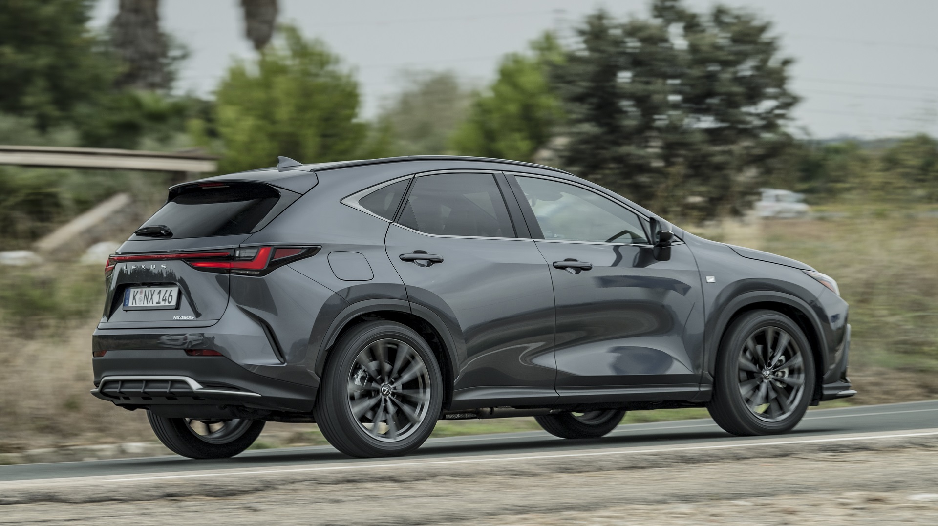Το NX Βασίζεται στην ίδια πλατφόρμα με το Toyota RAV4, αλλά η σχεδίαση του αμαξώματος είναι πολύ πιο πολυτελής και ελκυστική για να αποτελέσει το μοντέλο της Lexus έναν άξιο υποψήφιο στην απαιτητική premium D-SUV κατηγορία. Η επιθετική όψη του NX 450h+, ειδικά στη διαμόρφωση της κορυφαίας έκδοσης F Sport που είχαμε στα χέρια μας, κάνει πολλούς προπορευόμενους οδηγούς να κάνουν δεξιά για να παραχωρήσουν τη θέση τους στην αριστερή λωρίδα.