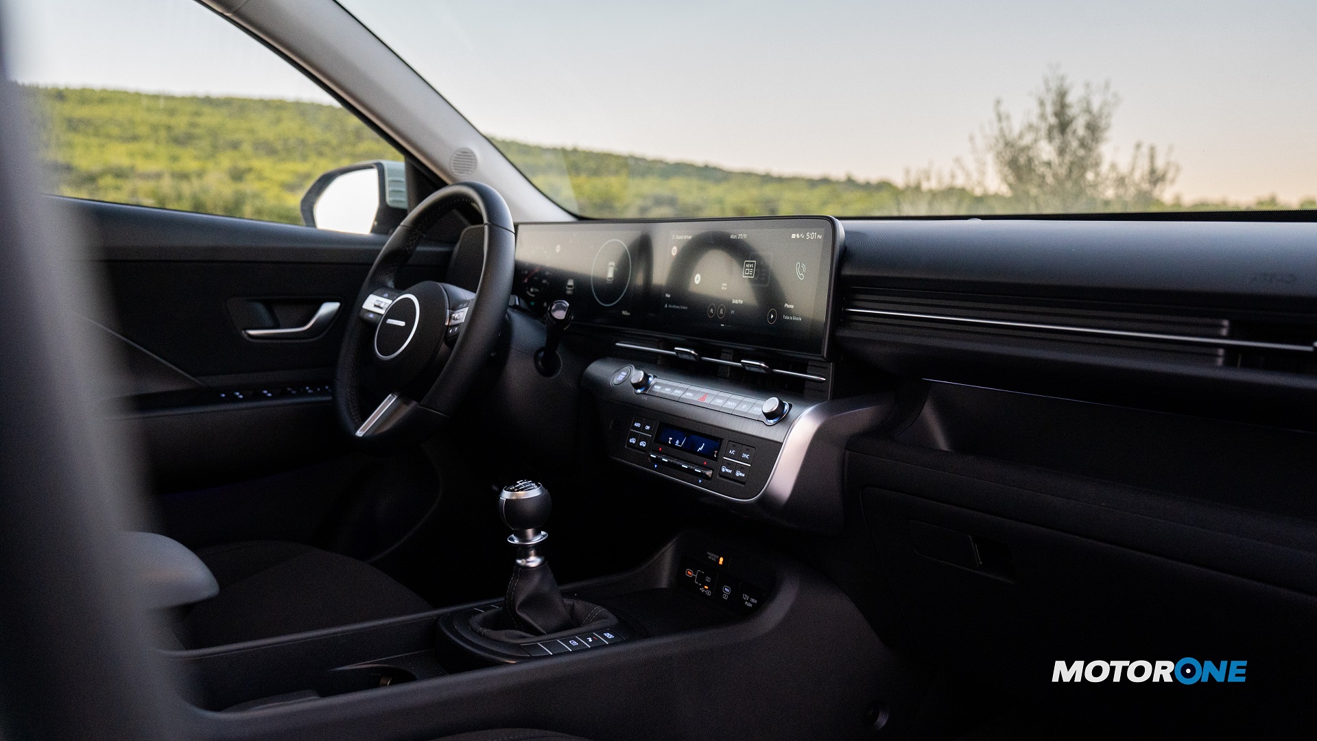 Κάτω από το καπό του Kona που δοκιμάζουμε βρίσκεται ο βασικός τρικύλινδρος 1.000άρης τούρμπο βενζινοκινητήρας που συνοδεύεται από ήπιο υβριδικό σύστημα 48 volt (MHEV) και αποδίδει ικανότατη ισχύ 120 ίππων και πλούσια ροπή 200 Nm. Συνδυάζεται με ένα σωστά κλιμακωμένο χειροκίνητο κιβώτιο 6 σχέσεων (υπάρχει και αυτόματη έκδοση DCT7 αλλά όχι MHEV) και διακρίνεται για τον τρόπο που κινεί το κορεατικό B-SUV.