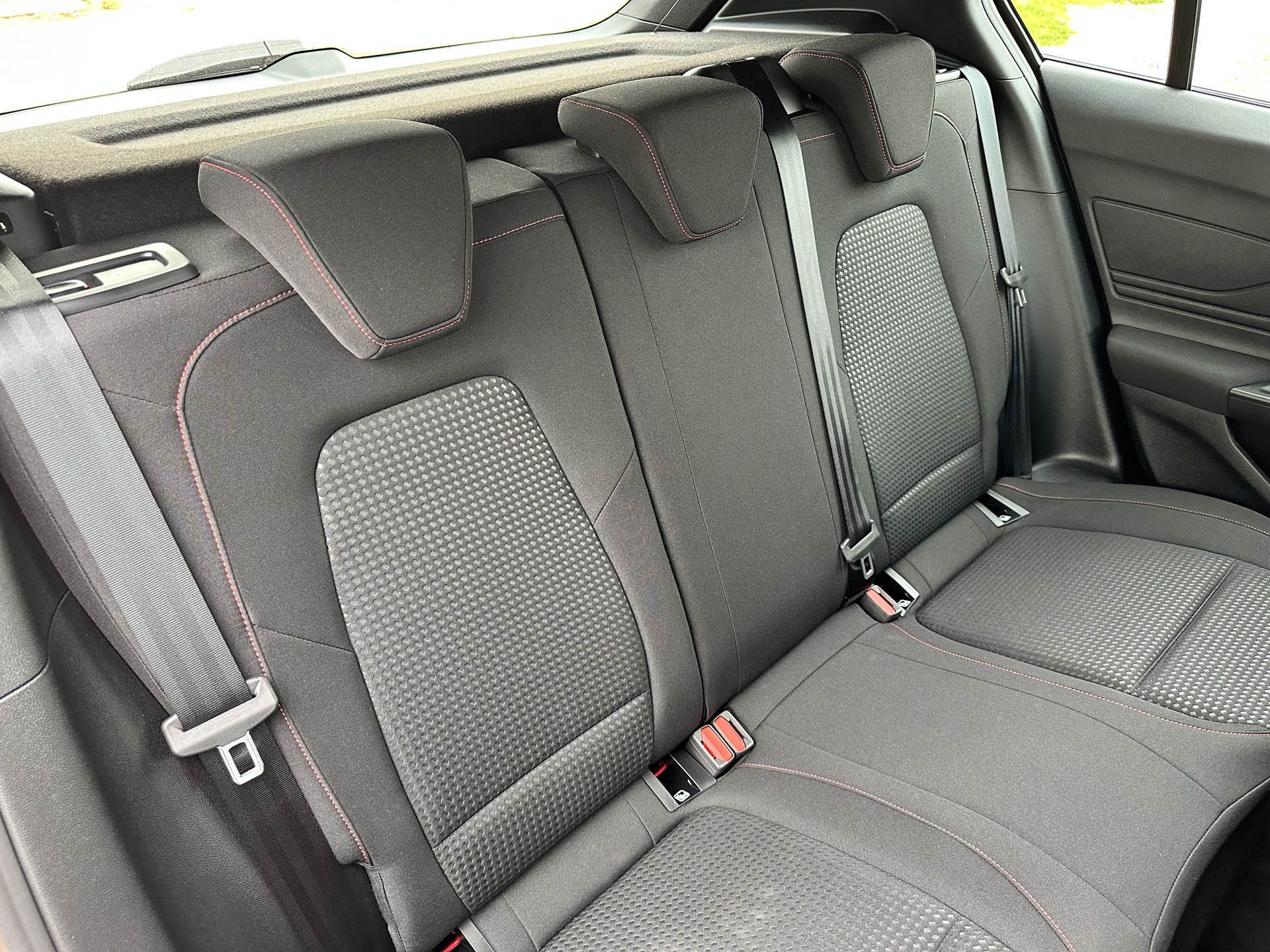 Στην πίσω σειρά καθισμάτων υπάρχει πλούσιος χώρος για τα γόνατα, αλλά και για το κεφάλι, παρά το μικρό συνολικό ύψος, ενώ το αυτοκίνητο είναι αρκετά φαρδύ για να μεταφέρει τρεις ενήλικες επιβάτες στην πίσω σειρά χωρίς πολύ στρίμωγμα. Δεν υπάρχει κεντρικό υποβραχιόνιο στο πίσω μέρος και κατά συνέπεια ούτε άνοιγμα προς το χώρο αποσκευών των 358 λίτρων, κάτω από τον οποίο υπάρχει ρεζέρβα ανάγκης.