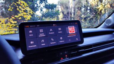 Η κεντρική οθόνη αφής για το σύστημα infotainment Uconnect, επίσης 10,25’’, είναι εύχρηστη, με ωραία γραφικά και φροντίζει για συνδεσιμότητα, πλοήγηση και ψυχαγωγία. Αμφότερες ανήκουν στον στάνταρ εξοπλισμό της μιας και μοναδικής έκδοσης 1.2T Altitude, όπως και το premium ηχοσύστημα JBL, ο αυτόματος κλιματισμός, η κάμερα οπισθοπορείας, οι πίσω αισθητήρες παρκαρίσματος και η βάση ασύρματης φόρτισης κινητού.