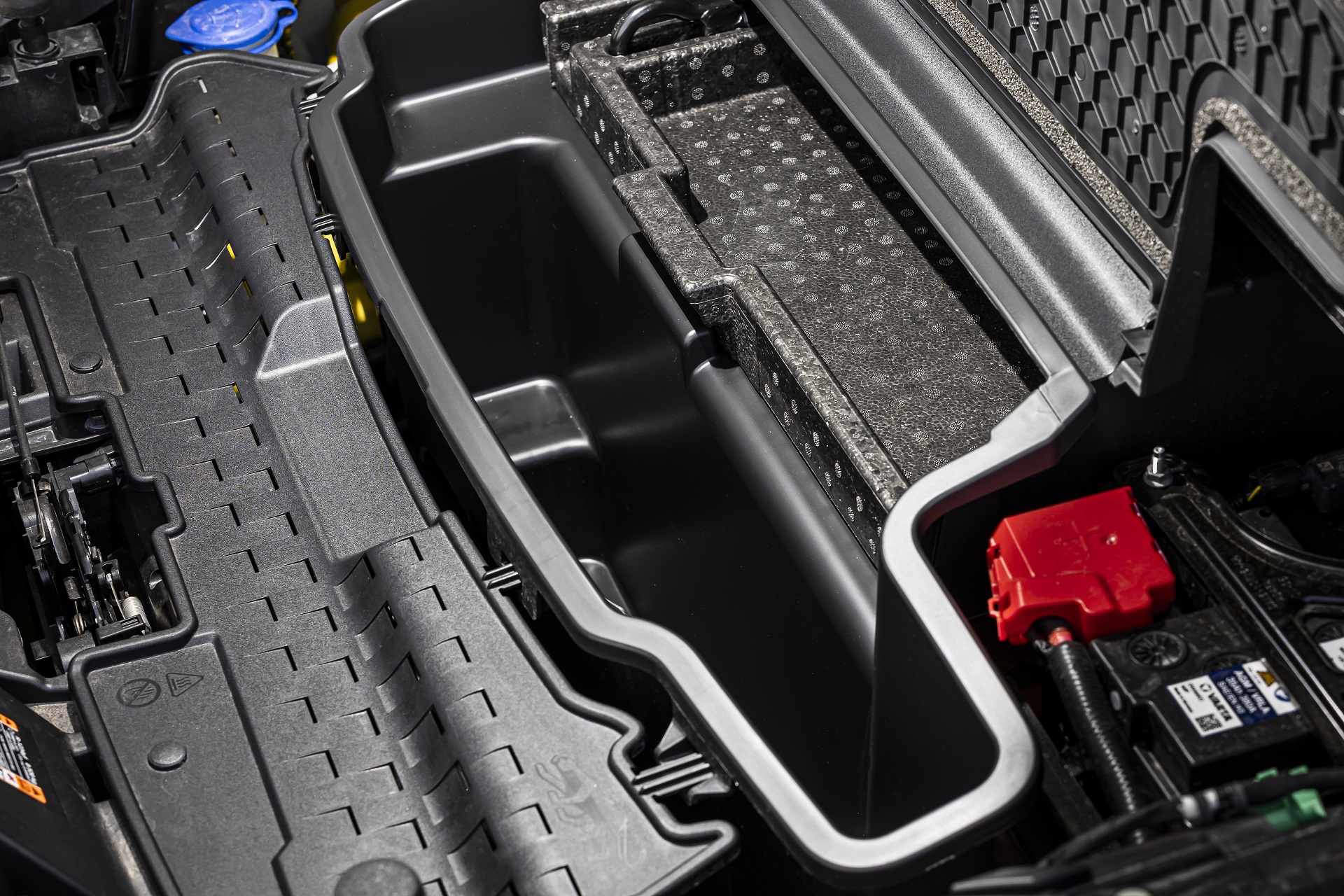 Πιο πίσω, η εικόνα είναι ειδυλλιακή! Θυμάστε το MegaBox του υβριδικού Puma; Ξεχάστε το. Εδώ έχουμε το GigaBox! Η απουσία εξάτμισης έχει αυξήσει τον όγκο του τετράγωνου, στεγανοποιημένου χώρου (με τάπα αποστράγγισης) κάτω από το δάπεδο του πορτμπαγκάζ στα 145 λίτρα (από 68)! Εκεί, για όσους δεν το γνωρίζουν, μπορείς π.χ. να βάλεις λερωμένα αντικείμενα, να πλύνεις το σκυλάκι σου μετά τη βόλτα στην παραλία ή να το γεμίσεις με πάγο για να δημιουργήσεις ένα ψυγείο στην εξοχή.