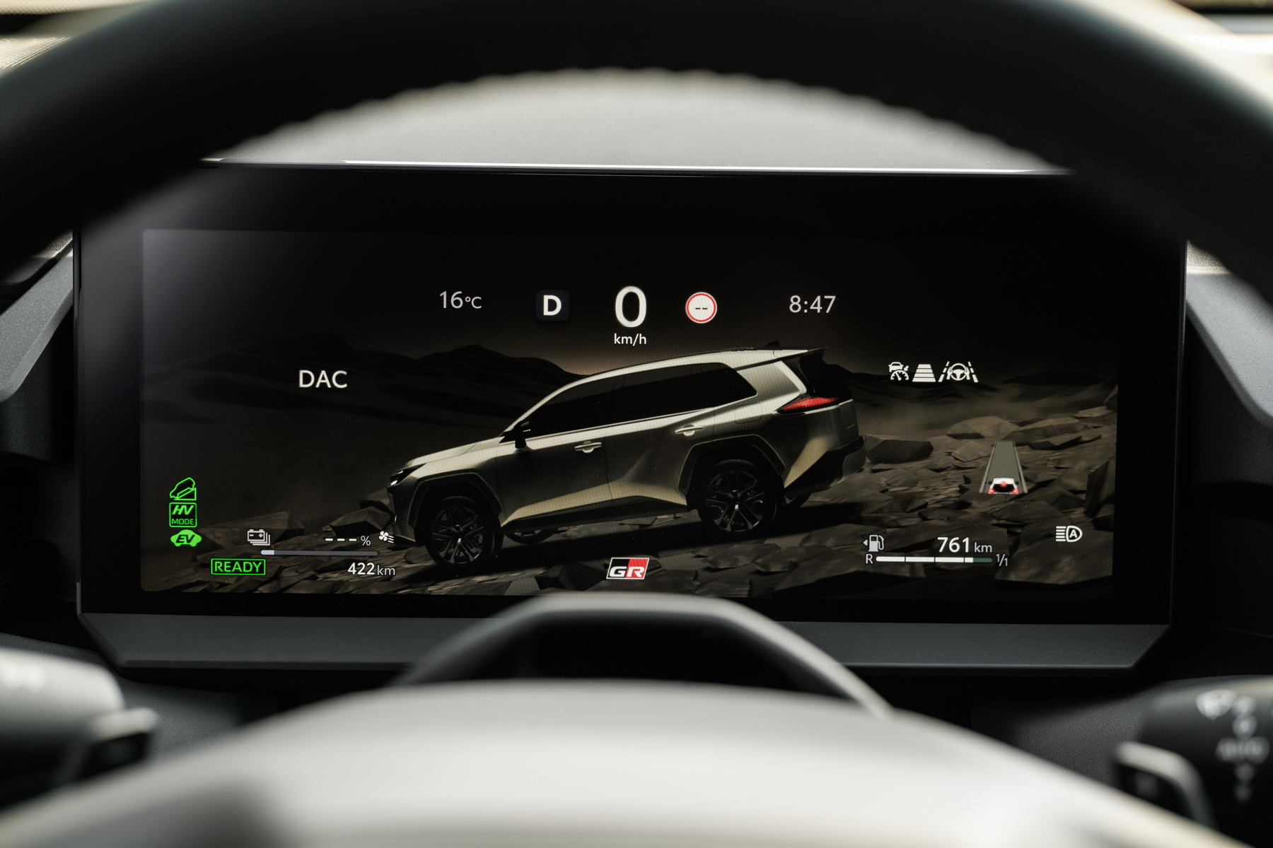 Η συνδεσιμότητα ενισχύεται μέσω της συνεργασίας με εταιρείες όπως η TomTom για την πλοήγηση, η Spotify για την ψυχαγωγία και η Google για πληροφορίες σημείων ενδιαφέροντος. Στον πυρήνα της εξέλιξης βρίσκεται η νέα πλατφόρμα ανάπτυξης λογισμικού Arene, η οποία κάνει το ντεμπούτο της σε μοντέλο παραγωγής και επιτρέπει τη δημιουργία και εξέλιξη προηγμένων συστημάτων ασφάλειας και ψυχαγωγίας σε ένα ψηφιακό περιβάλλον. Μέσω αυτής, το RAV4 μετατρέπεται σε ένα όχημα που καθορίζεται σε μεγάλο βαθμό από το λογισμικό, προσφέροντας δυνατότητες συνεχούς αναβάθμισης και εξατομίκευσης. Το νέο ψηφιακό περιβάλλον επιτρέπει την ενσωμάτωση προηγμένων λειτουργιών πολυμέσων, βελτιωμένων συστημάτων υποβοήθησης οδηγού και υπηρεσιών συνδεσιμότητας, διαμορφώνοντας μια συνολικά πιο εξελιγμένη εμπειρία χρήσης.
