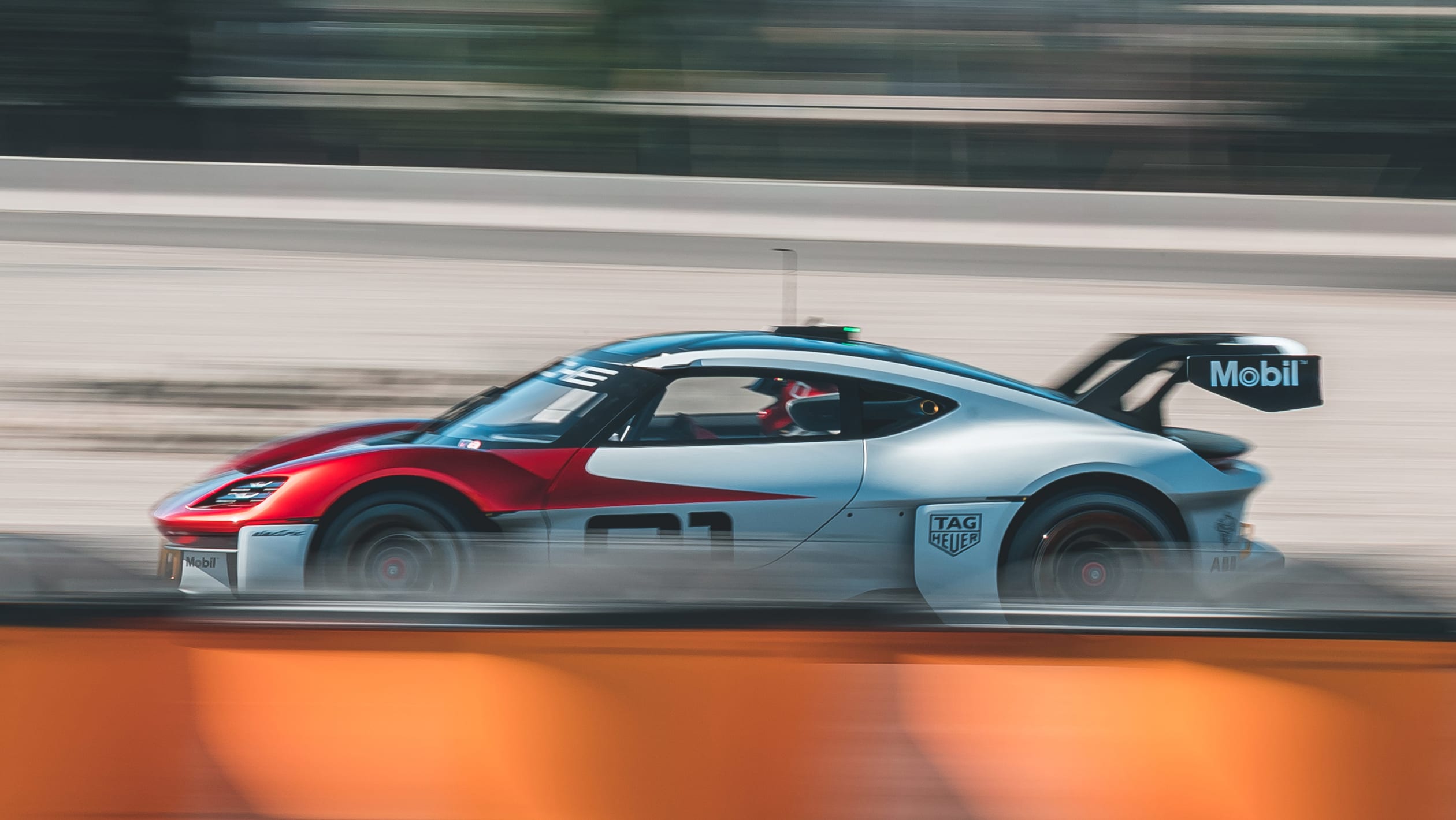 Αυτό το αυτοκίνητο επίσης αποτελεί μια πρόταση από την Porsche Motorsport για το πώς θα μπορούσε ένα μελλοντικό αγωνιστικό ηλεκτρικό, να μοιάζει και να οδηγείται, στα πρότυπα του επιτυχημένου πρωταθλήματος 911 Carrera Cup. Και η οδήγηση είναι αυτό ακριβώς που είχαμε την ευκαιρία να κάνουμε εδώ.