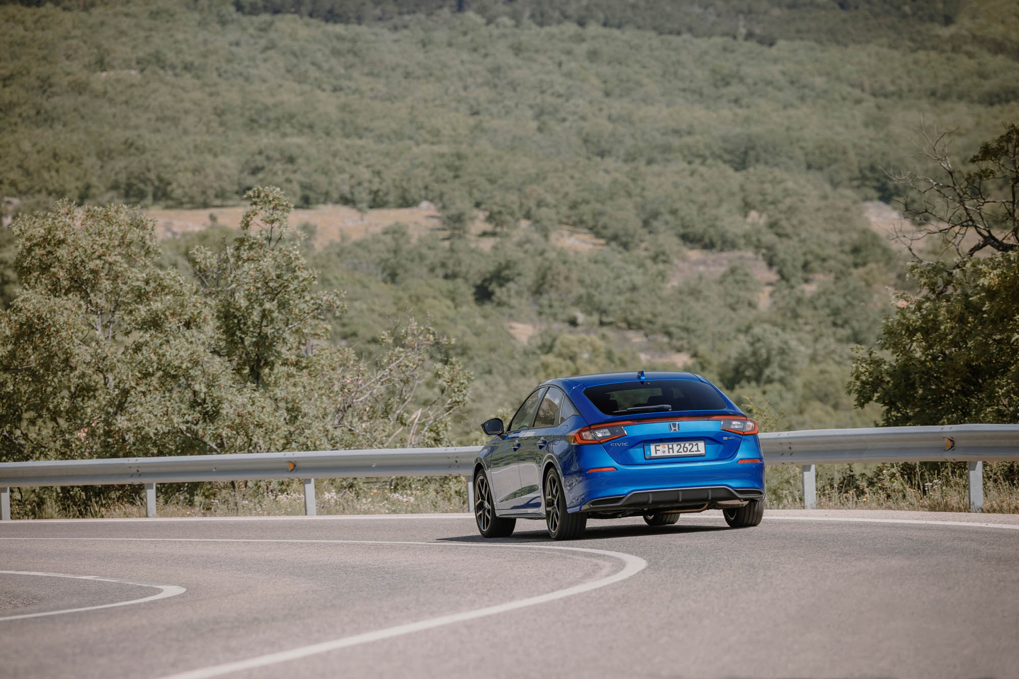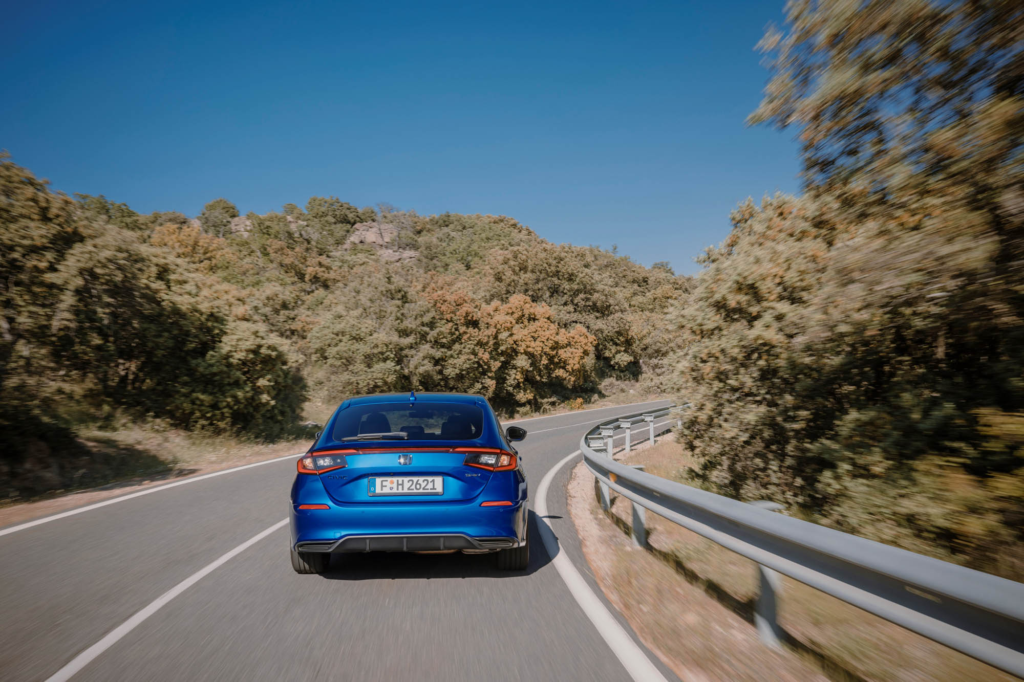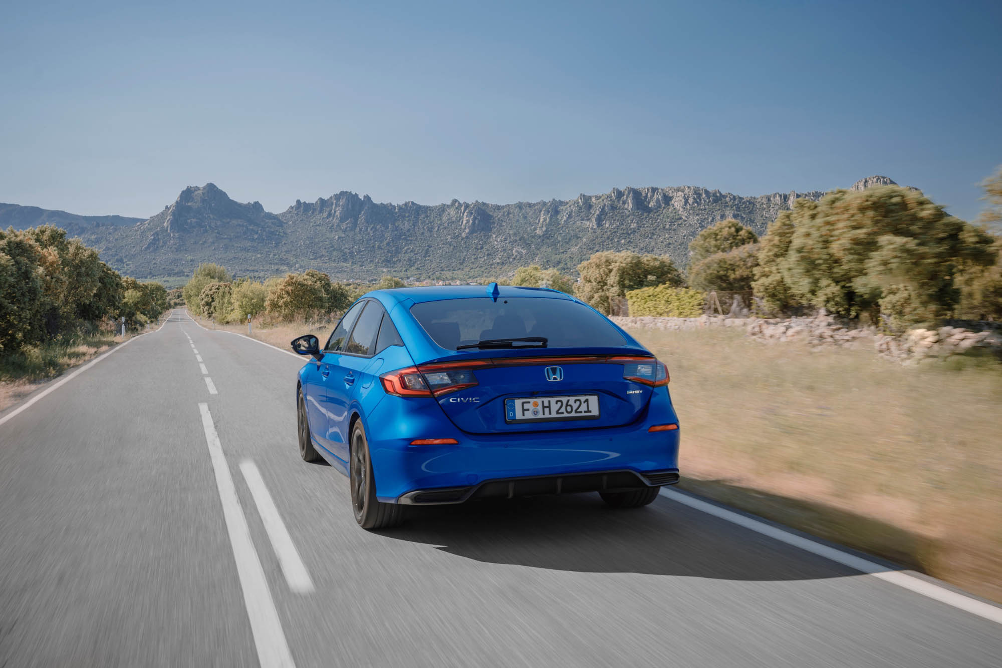Το νέο Civic e:HEV διαθέτει ένα υβριδικό σύστημα που αποτελείται από έναν ατμοσφαιρικό κινητήρα βενζίνης 2,0 λίτρων άμεσου ψεκασμού που λειτουργεί σε κύκλο Atkinson, με θερμική απόδοση που φτάνει το 41% και συνεργάζεται με δύο ηλεκτρικούς κινητήρες, με ισχύ 184 ίππων (135 kW) και 315 Nm ροπής. Το σύνολο είναι ιδιαίτερα αποδοτικό, με την μέση κατανάλωση να περιορίζεται στα 4,7 λτ./100 χλμ., όσο είδαμε και κατά την οδήγηση στους δρόμους της Μαδρίτης και πέριξ, για απόσταση περίπου 300 χιλιομέτρων μικτών διαδρομών, ενώ οι εκπομπές CO2 περιορίζονται στα 108 γρ./χλμ.