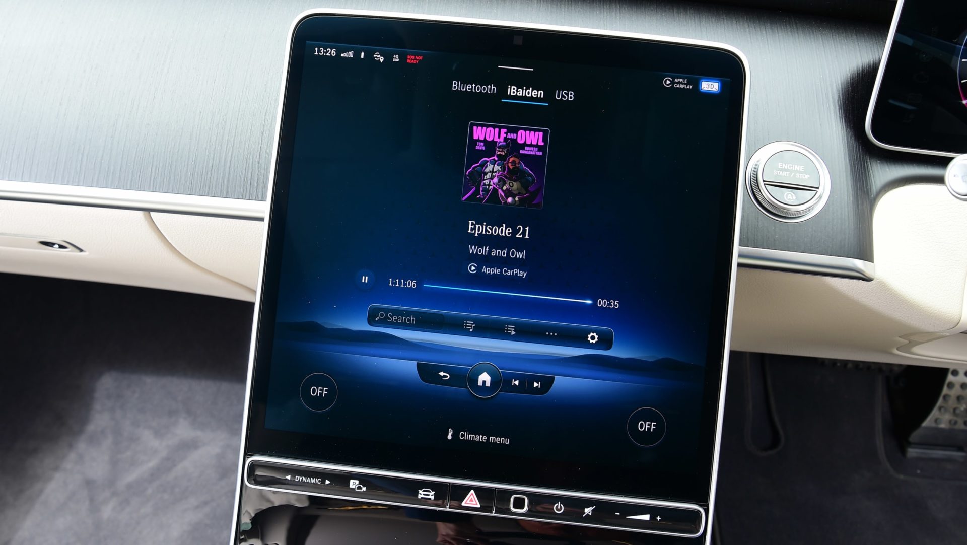 Έτσι, όσον αφορά την τεχνολογία αυτή η S-Class μπορεί να υποστηρίξει στην πράξη όσα ισχυρίζεται. H S-Class ανέκαθεν αποτελούσε τον προπομπό των νέων τεχνολογικών εξελίξεων, που ακολούθως πέρναγαν στη γκάμα των άλλων μοντέλων της Mercedes-Benz. Η νέα οθόνη του συστήματος πολυμέσων είναι εξαιρετική, ειδικά στη διαμόρφωση του Apple CarPlay που απεικονίζεται σε μεγάλο μέγεθος. Επιπλέον, υπάρχει tablet και για τους πίσω επιβάτες, ενώ μπορούν να ελέγξουν κάποιες τεχνολογίες, συμπεριλαμβανομένων της μπάρας φωτισμού που διατρέχει το εσωτερικό του αυτοκινήτου.