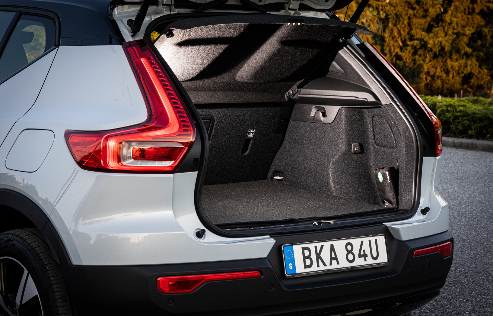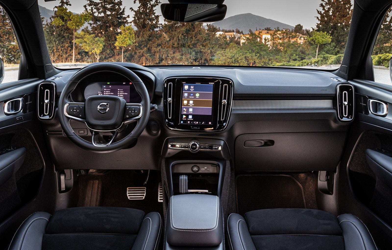 Εξωτερικά οι διαφορές από τις υπόλοιπες εκδόσεις του XC40 είναι περιορισμένες. Μπαίνοντας όμως στο XC40 Recharge δεν θα βρεις μπουτόν εκκίνησης. Ένας αισθητήρας στο κάθισμα του οδηγού αντιλαμβάνεται την παρουσία σου και – με την προϋπόθεση ότι το κλειδί είναι στην τσέπη σου ή μέσα στο αυτοκίνητο – απλά βάζεις τον επιλογέα του κιβωτίου στο D και… έφυγες. Για τη στάθμευση και την έξοδο από το αυτοκίνητο επιλέγεις τη θέση P (parking). Για μία τετραμελή οικογένεια, το ηλεκτρικό XC40 Recharge προσφέρει ικανοποιητικούς χώρους. Πέρα από τα 413 λίτρα του πορτμπαγκάζ, υπάρχει ένας επιπλέον αποθηκευτικός χώρος 31 λίτρων μπροστά, κάτω από το καπό.