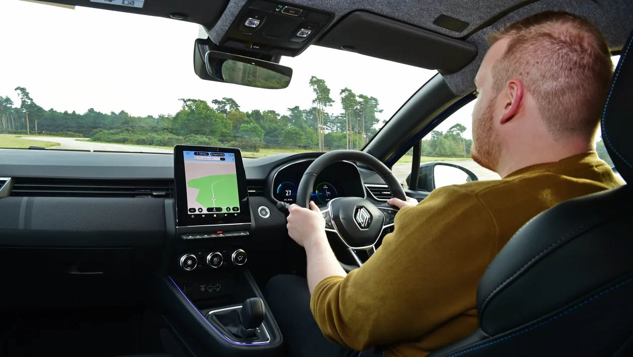 Ωστόσο, το σύστημα δεν ανταποκρίνεται τόσο καλά σε πλήρη επιτάχυνση, καθώς το κιβώτιο θέλει το χρόνο του για να αποφασίσει πότε θα αλλάξει ταχύτητα, οπότε συχνά περιμένεις ακούγοντας απλώς το βρυχηθμό του βενζινοκινητήρα. Το υβριδικό Clio δεν είναι ιδιαίτερα γρήγορο ούτως ή άλλως, καθώς χρειάζεται πάνω από 9 δλ. για να φτάσει τα 100 χλμ./ώρα από στάση, οπότε θα σας συνιστούσαμε να υιοθετήσετε μια ήπια προσέγγιση με το γκάζι.
