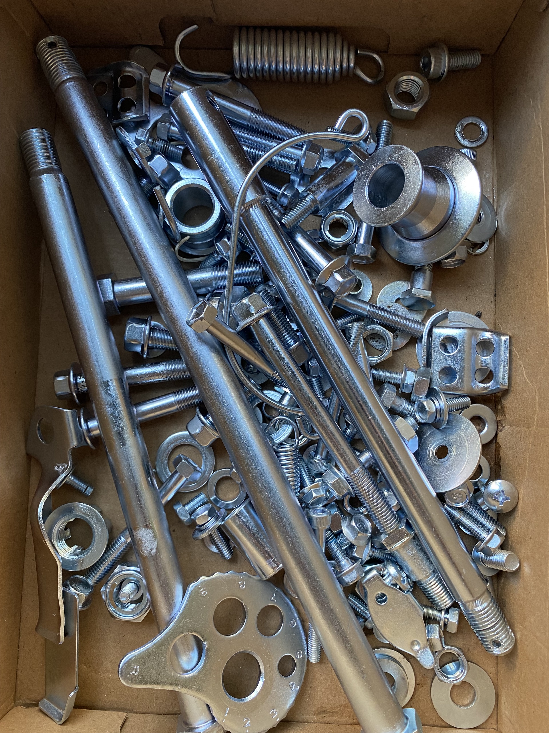 Όλες οι βίδες, οι άξονες, τα μεταλλικά εξαρτήματα, τα παξιμάδια, οι ροδέλες, αφού καθαρίστηκαν αρχικά σε βούρτσα, στη συνέχεια πέρασαν από χημική αποκατάσταση τους με κάδμιο.