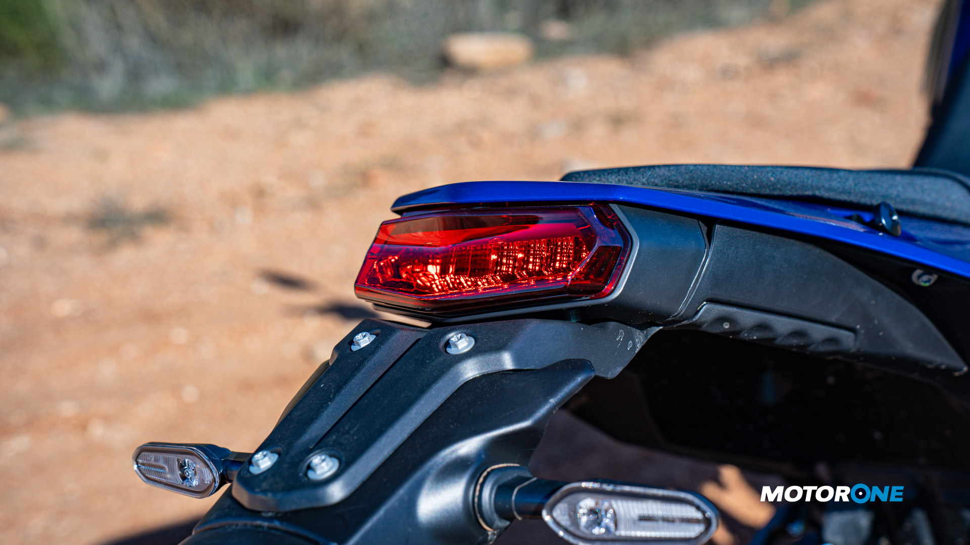 Ειδικά σε αυτό το σημείο ελαττώνεται αρκετά το πρόβλημα με την δεξιά κνήμη που βρίσκει στο καπάκι του συμπλέκτη. Το νέο μπροστινό της φέρινγκ φωλιάζει μέσα του των αγωνιστικών διαστάσεων φανάρι με τα τέσσερα φωτιστικά σώματα τύπου Led, τα οποία είναι ενσωματωμένα πάνω στο πύργο της και θυμίζουν έντονα αγωνιστική μοτοσυκλέτα από το Ντακάρ. Σε αυτή τη μορφή βοηθάει και η τοποθέτηση της εξάτμισης που έρχεται από δεξιά, με το τελικό της στο πλάι σε μεσαίο ύψος.