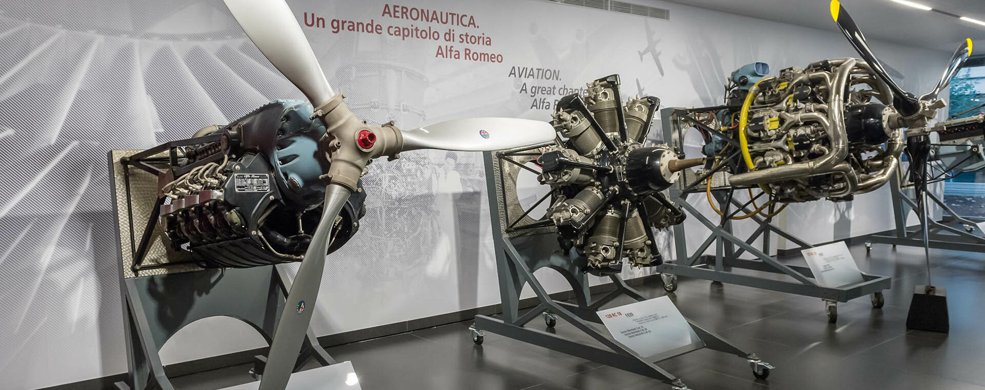 Κεντρικό σημείο αποτελεί η έκθεση «Alfa Romeo Avio. Motori per l’aeronautica», η οποία φωτίζει μια λιγότερο γνωστή, αλλά εξαιρετικά σημαντική πτυχή της Alfa Romeo: τη δραστηριότητά της στην αεροπορική βιομηχανία. Μέσα από 34 θεματικά πάνελ με φωτογραφίες και σχέδια από το ιστορικό αρχείο της εταιρείας, παρουσιάζεται η εξέλιξη της τεχνογνωσίας της στον τομέα των αεροπορικών κινητήρων.
