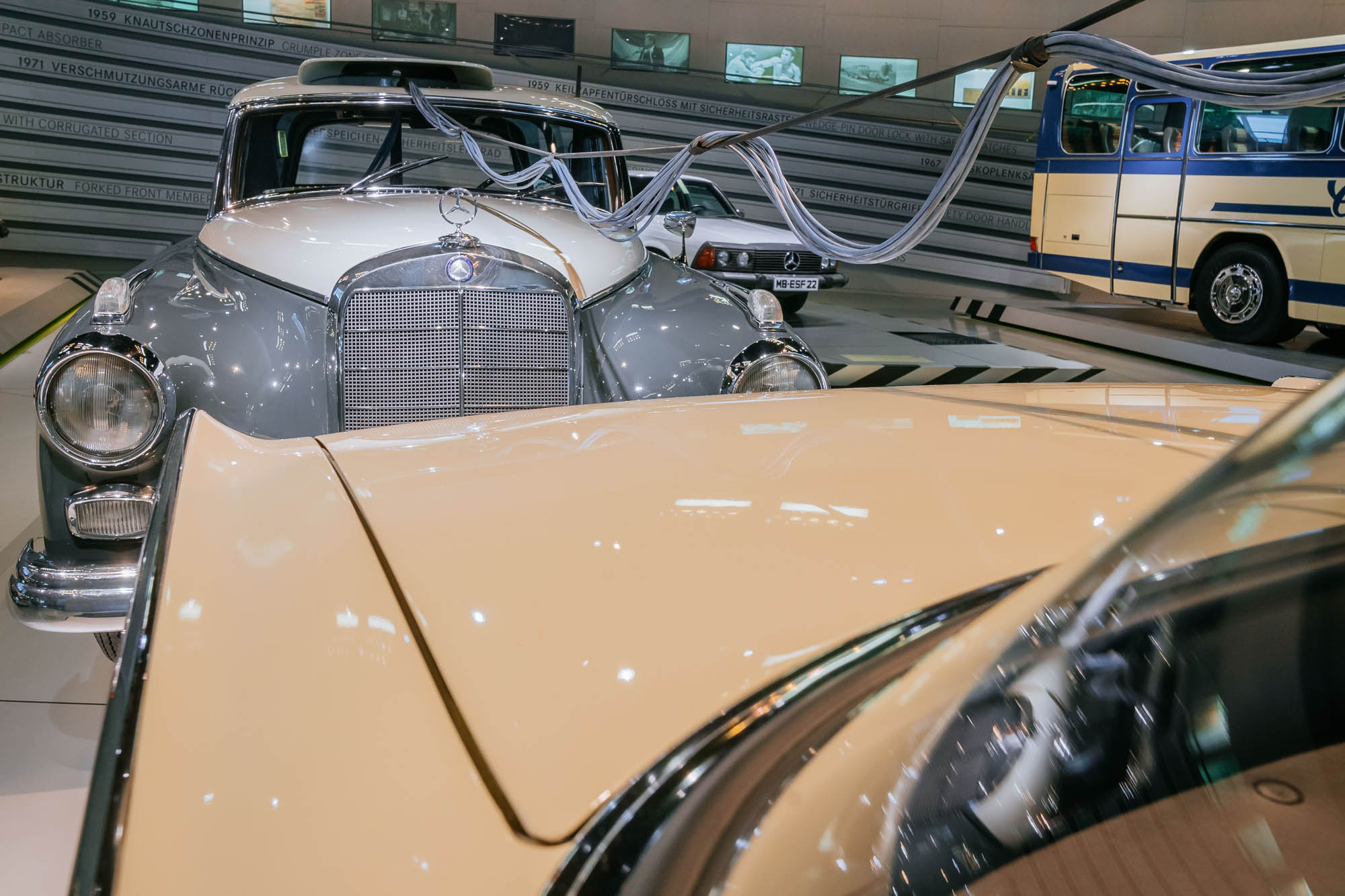 Αυτή η Mercedes-Benz 300 είναι διπλά εντυπωσιακή. Αρχικά εξ αιτίας ενός καλωδίου που τη συνδέει με μια Mercedes-Benz 220 S αλλά και γιατί μόνο το μισό αυτοκίνητο μοιάζει με κανονική «Adenauer» (όπως ονομάζεται λόγω της προτίμησης του πρώτου Γερμανού Καγκελαρίου, Konrad Adenauer για το μοντέλο). Η διαφορά ξεκινά πίσω από την κολόνα Β.