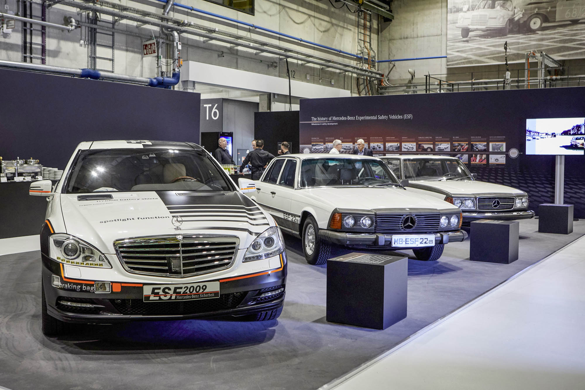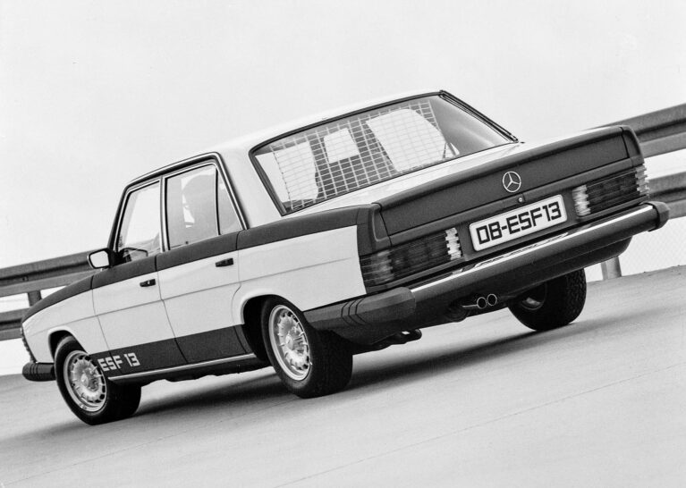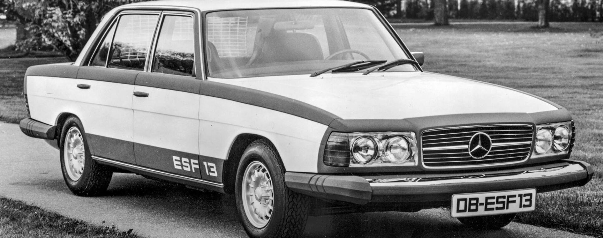 Ο αριθμός 13 ήταν τυχερός αριθμός για την ασφάλεια των οχημάτων πριν από 50 χρόνια. Η Mercedes-Benz παρουσίασε το πειραματικό όχημα ασφάλειας (Experimental Safety Vehicle για συντομία: ESF 13), στην εμπορική έκθεση «Transpo 72» στην Ουάσιγκτον των ΗΠΑ το 1972. Το συγκεκριμένο αυτοκίνητο ήταν πολύ μπροστά από την εποχή του, με λύσεις όπως σύστημα φρένων ABS, αερόσακους για όλους τους επιβάτες, ένα σύστημα προβολέων με φως αλογόνου καθώς και άλλα πρωτοποριακά στοιχεία.