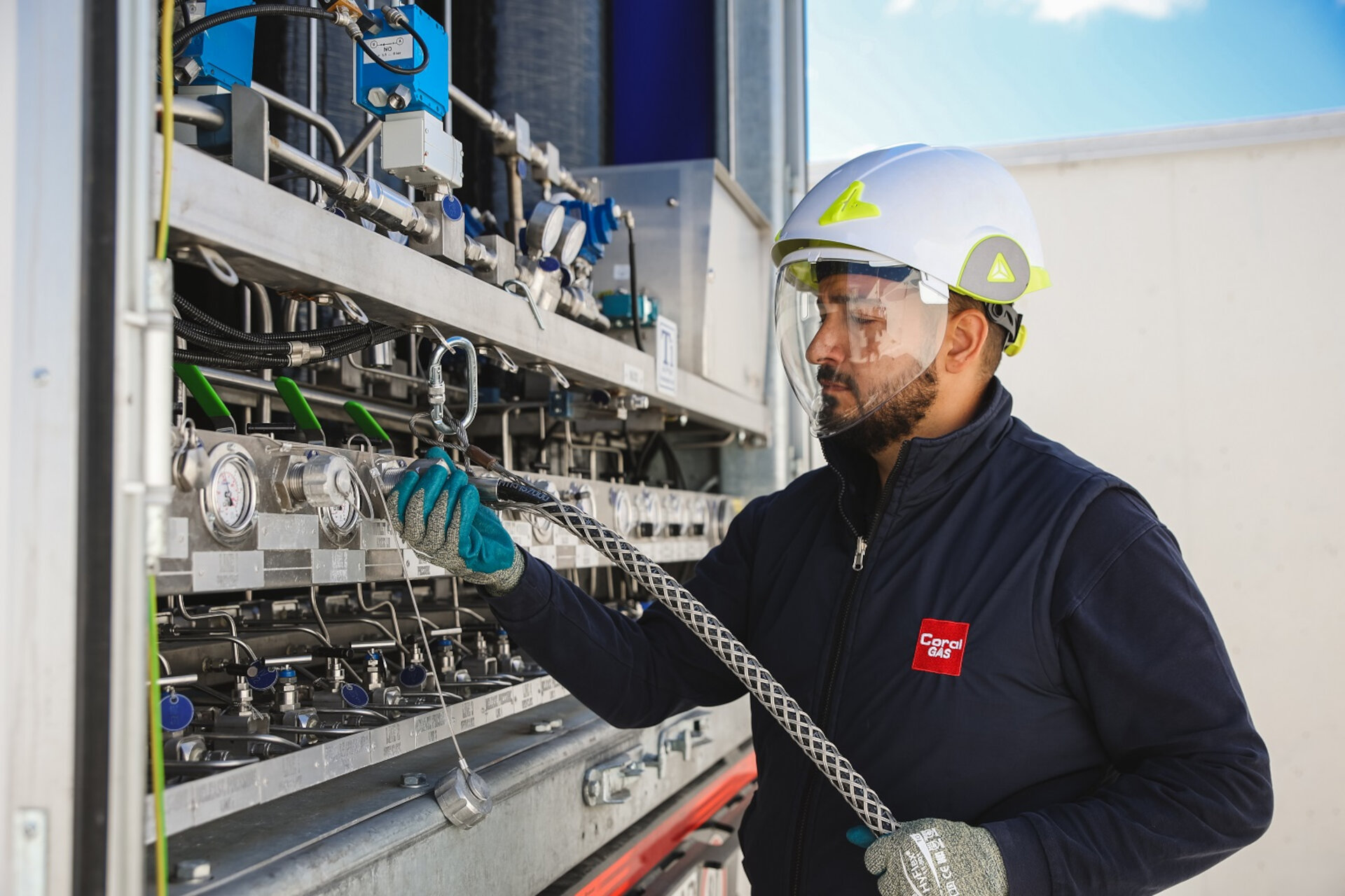 Η Coral Gas ανέλαβε την προμήθεια και μεταφορά του υδρογόνου από το εξωτερικό, και συγκεκριμένα από την Αυστρία. Στο μέλλον, η πλήρωση των trailer θα γίνεται στο σταθμό φόρτωσης υδρογόνου που κατασκευάζει η Motor Oil στο διυλιστήριο. Επίσης, η bfs (Building Facility Services), κατασκευαστική εταιρεία του Ομίλου, ανέλαβε και υλοποίησε το απαιτητικό έργο κατασκευής και επίβλεψης δοκιμαστικής λειτουργίας και ασφάλειας του πρατηρίου.