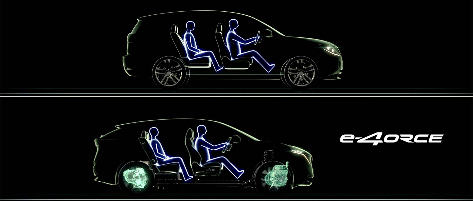 Ελέγχοντας την παροχή ισχύος και το φρενάρισμα σε κάθε τροχό, το e-4ORCE μπορεί να διαχειριστεί τις δυνάμεις που ασκούνται στο αυτοκίνητο για να ελαχιστοποιήσει το «βύθισμα» κατά την επιτάχυνση και το φρενάρισμα. Λιγότερη κίνηση του οχήματος σημαίνει μείωση της κλίσης του αμαξώματος που μπορεί να προκαλέσει αδιαθεσία στους επιβάτες, αλλά και στα τετράποδα.