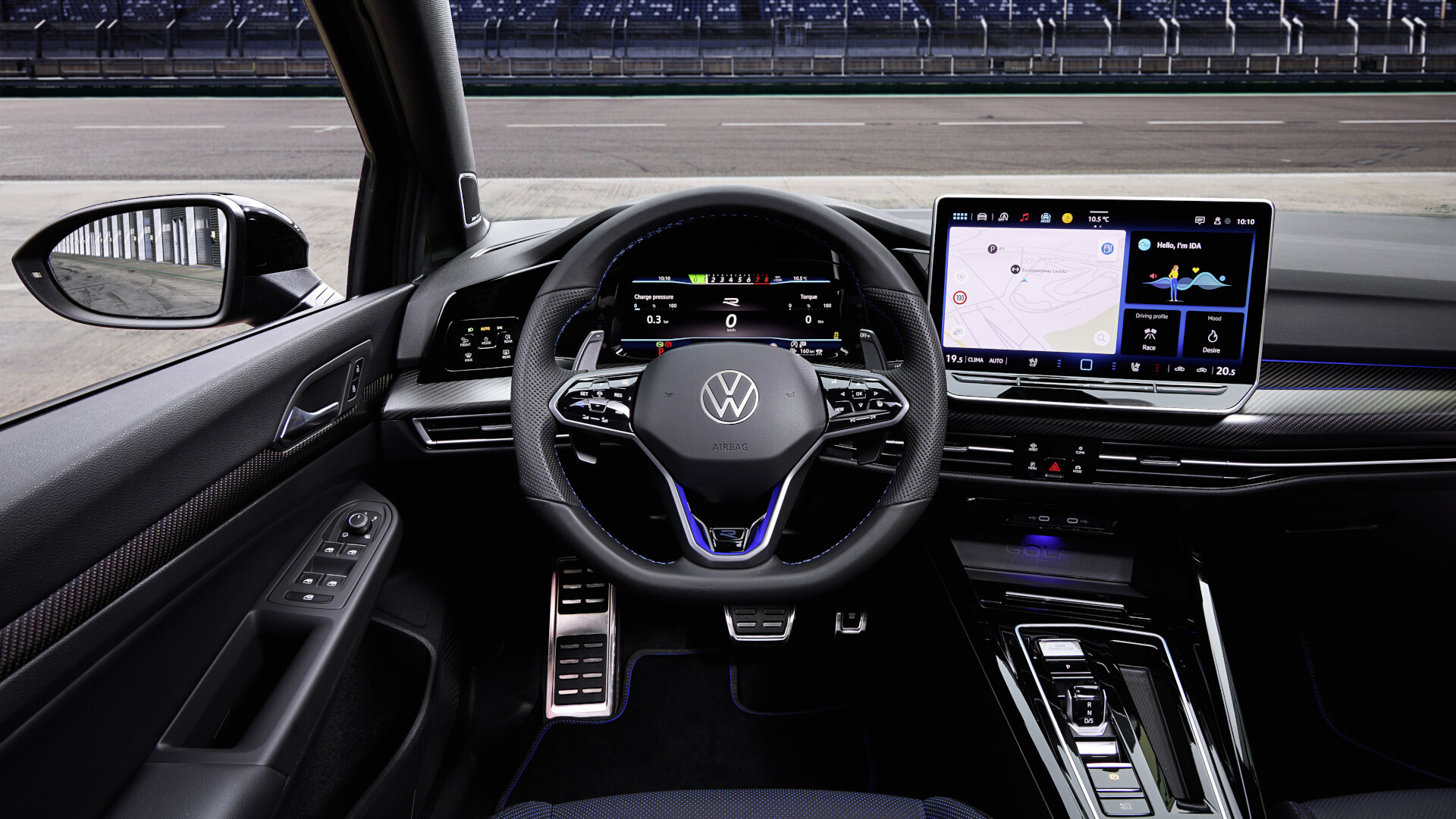 Στο εσωτερικό υπάρχουν οι ίδιες αναβαθμίσεις στο infotainment με την υπόλοιπη γκάμα Golf. Η οθόνη είναι μεγαλύτερη, φτάνοντας πλέον τις 12,9 ίντσες, ενώ διαθέτει και ενσωματωμένη τεχνητή νοημοσύνη, με το ChatGPT. Σε αντίθεση με όλη την υπόλοιπη γκάμα, τα κουμπιά αφής στο τιμόνι παραμένουν, καθώς το Golf R διατηρεί το κουμπί R-Mode. Η Volkswagen υποστηρίζει πως τα έχει κάνει λιγότερο ευαίσθητα, που σημαίνει πως κατά πάσα πιθανότητα θα μειωθούν τα μη ηθελημένα πατήματα.
