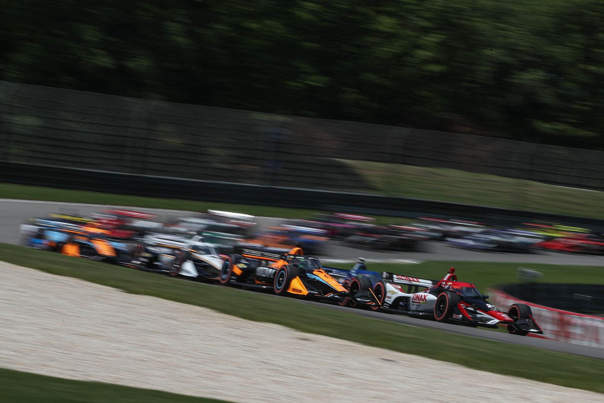 Οι ελπίδες αυτών που ακολούθησαν στρατηγική τριών pit stop να επικρατήσουν κατέρρευσαν με την μοναδική επέμβαση του αυτοκινήτου ασφαλείας έπειτα από το τετ-α-κέ του Calum Ilott στον 32ο γύρο από τους 90 συνολικά. Στην επανεκκίνηση, ο Alexander Rossi, της Andretti Autosport, κατάφερε να προσπεράσει τον Palou για την 4η θέση. Στο δεύτερο pit stop, με πολύ καλό γύρο εισόδου και άψογη δουλειά από τους μηχανικούς της Arrow McLaren SP, ο O’Ward βρέθηκε ακριβώς πίσω από τον Veekay και με μια αποφασιστική κίνηση από την εξωτερική, κατάφερε να περάσει στην πρωτοπορία για το τελευταίο 1/3 αγώνα.